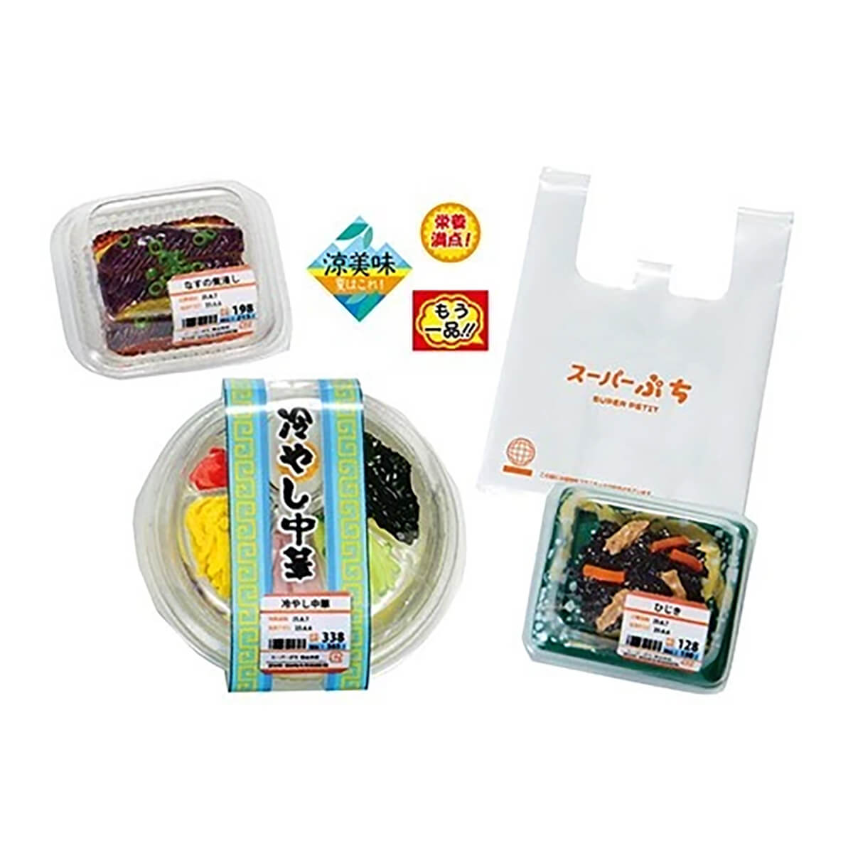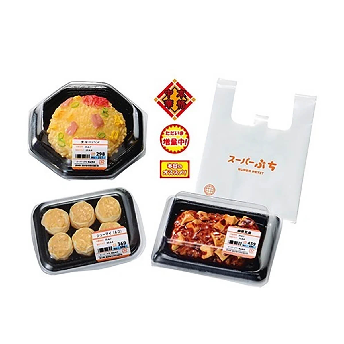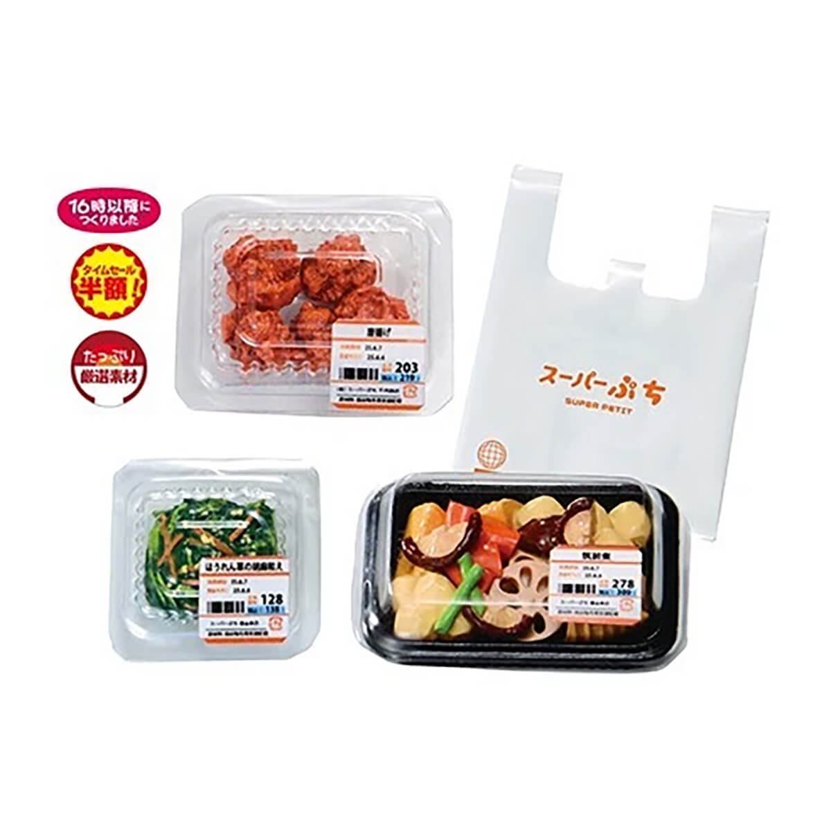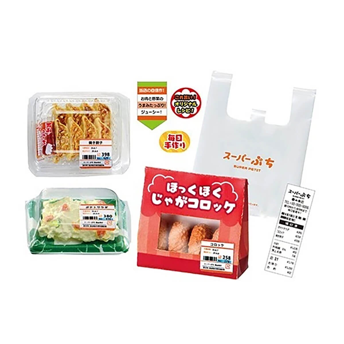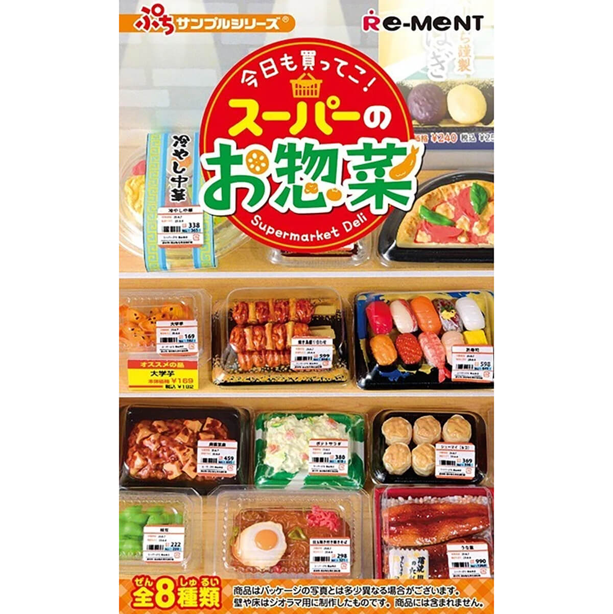 Supermarket Deli Blind Box by Re-Ment Japan. The supermarket deli collection features eight different sets of highly realistic miniature food and deli counter items designed for collectors and diorama creation. The complete set includes eight different types of deli food, such as pizza, sushi, and fried rice, along with accessories like price stickers and posters!