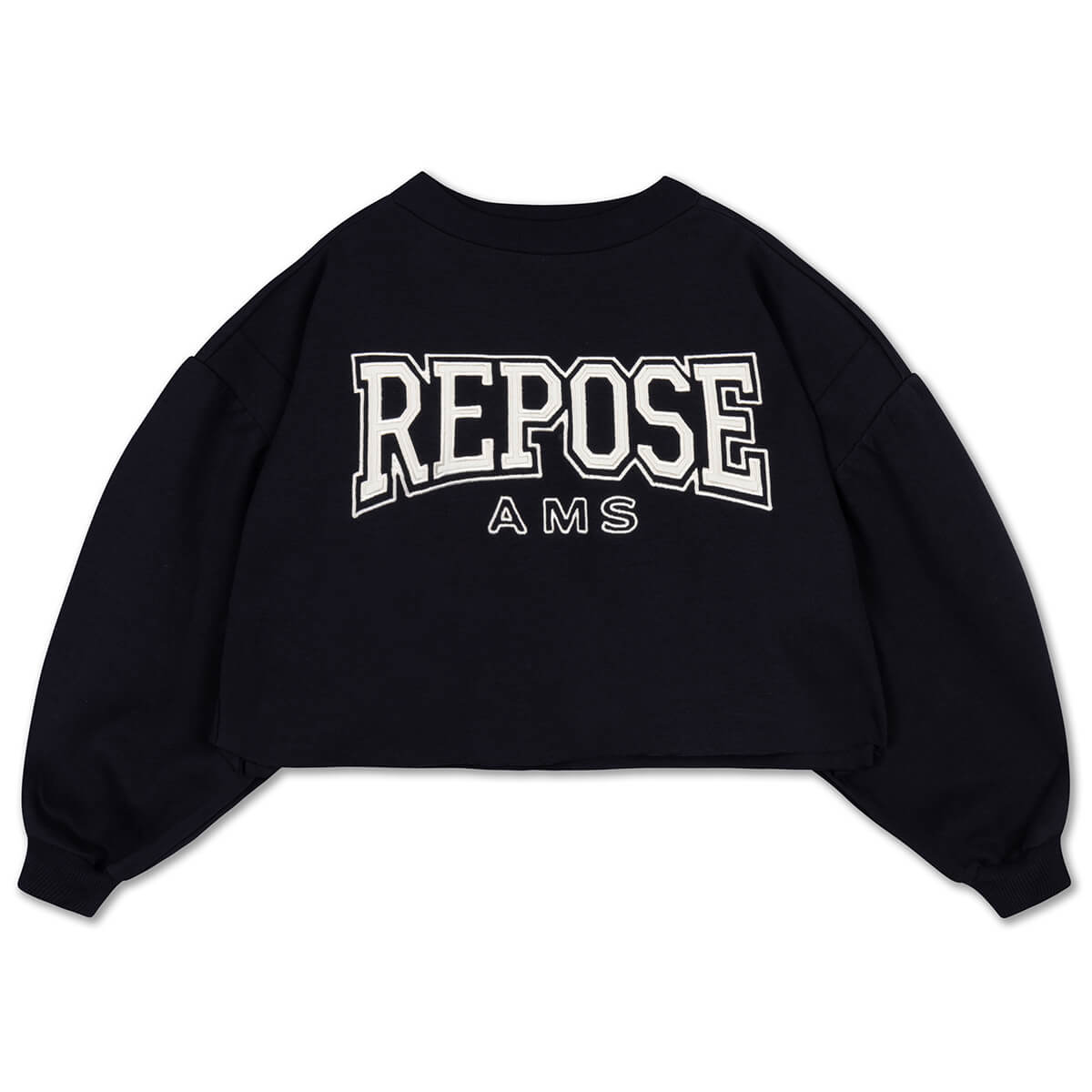 Crop Heart Sweater by Repose AMS. A cropped length sweatshirt with drop shoulder and grahite text print.