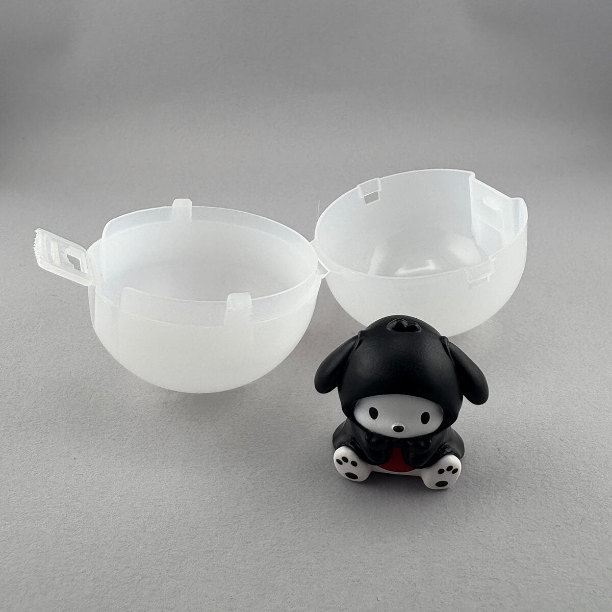 Sanrio Characters Act Like Ghost Dark Mix Gachapon Capsule Collectible by Takara Tomy. Highly collectible and authentic Japanese gachapon capsule containing one of five different spooky Sanrio characters - My Melody and Hello Kitty are hidden beneath removable black ghost sheet costumes, and there are also Pochacco, Kuromi and Cinnamoroll in black ghost sheets (non removable).