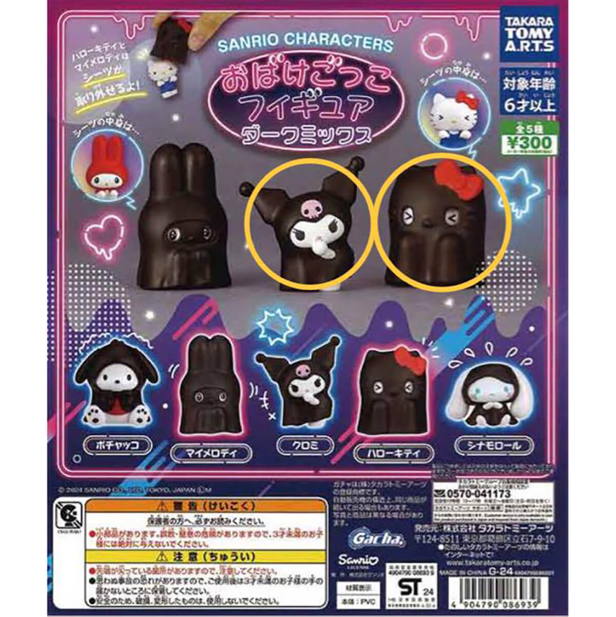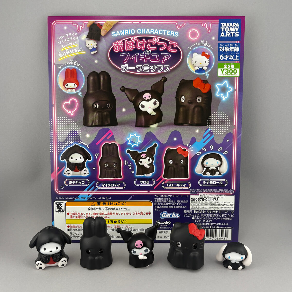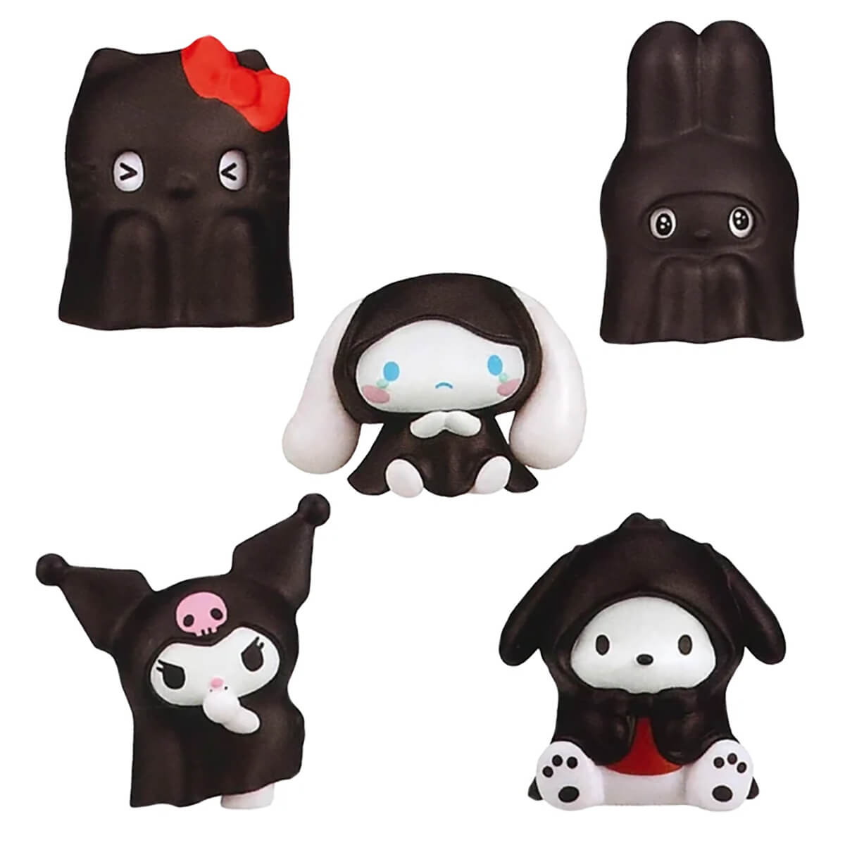 There are five ghost Sanrio characters in this Gachapon series: My Melody, Hello Kitty, Pochacco, Kuromi and Cinnamoroll.