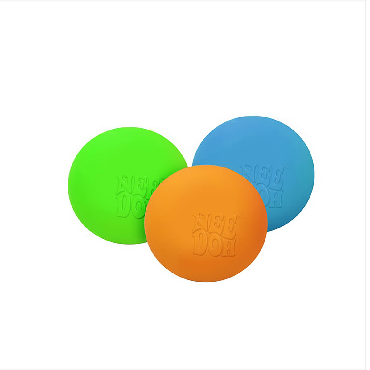 Teenie Needoh squishy toy by Schylling. Squeeze away the stresses of the day with these squishy stress balls for kids. A micro version of Classic NeeDoh, they easily fit inside the palms of little hands. Each box contains three Teenie Needoh balls in random colours including orange, blue, green, purple, pink and red.