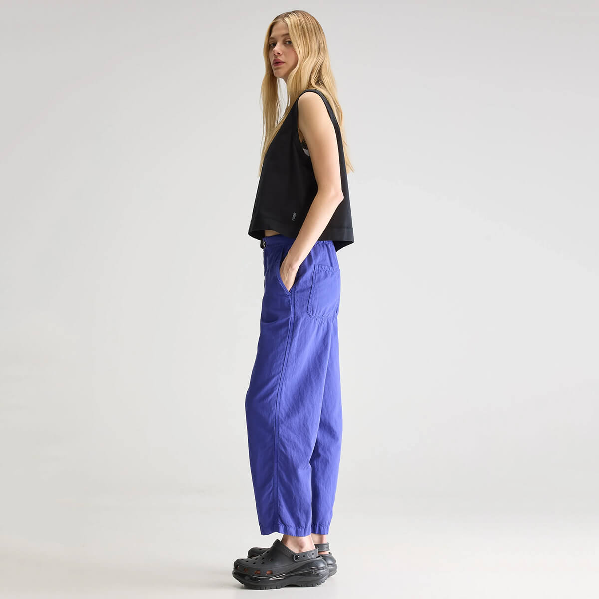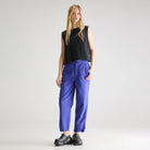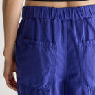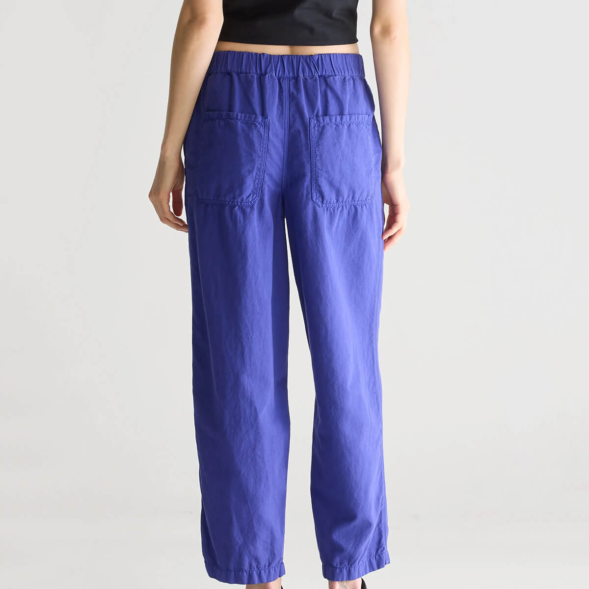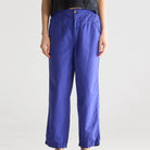 Walker Relaxed Trousers by Bellerose. Relaxed-fit trousers in a vibrant worker blue, featuring a comfortable elastic waistband at the back and practical side pockets, accented by contrast blue stitching.