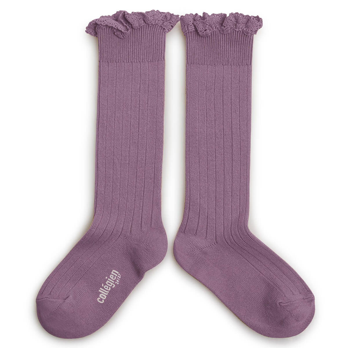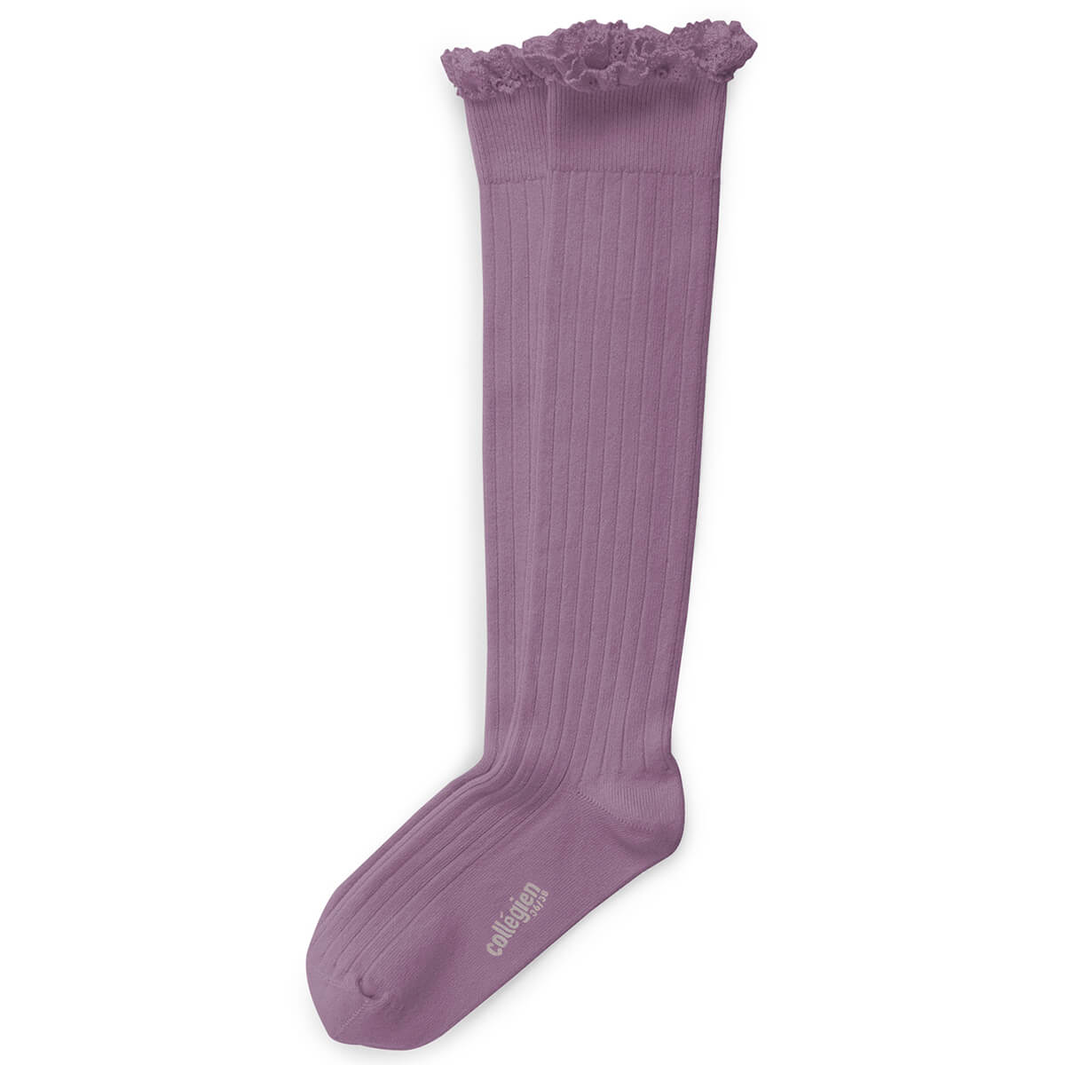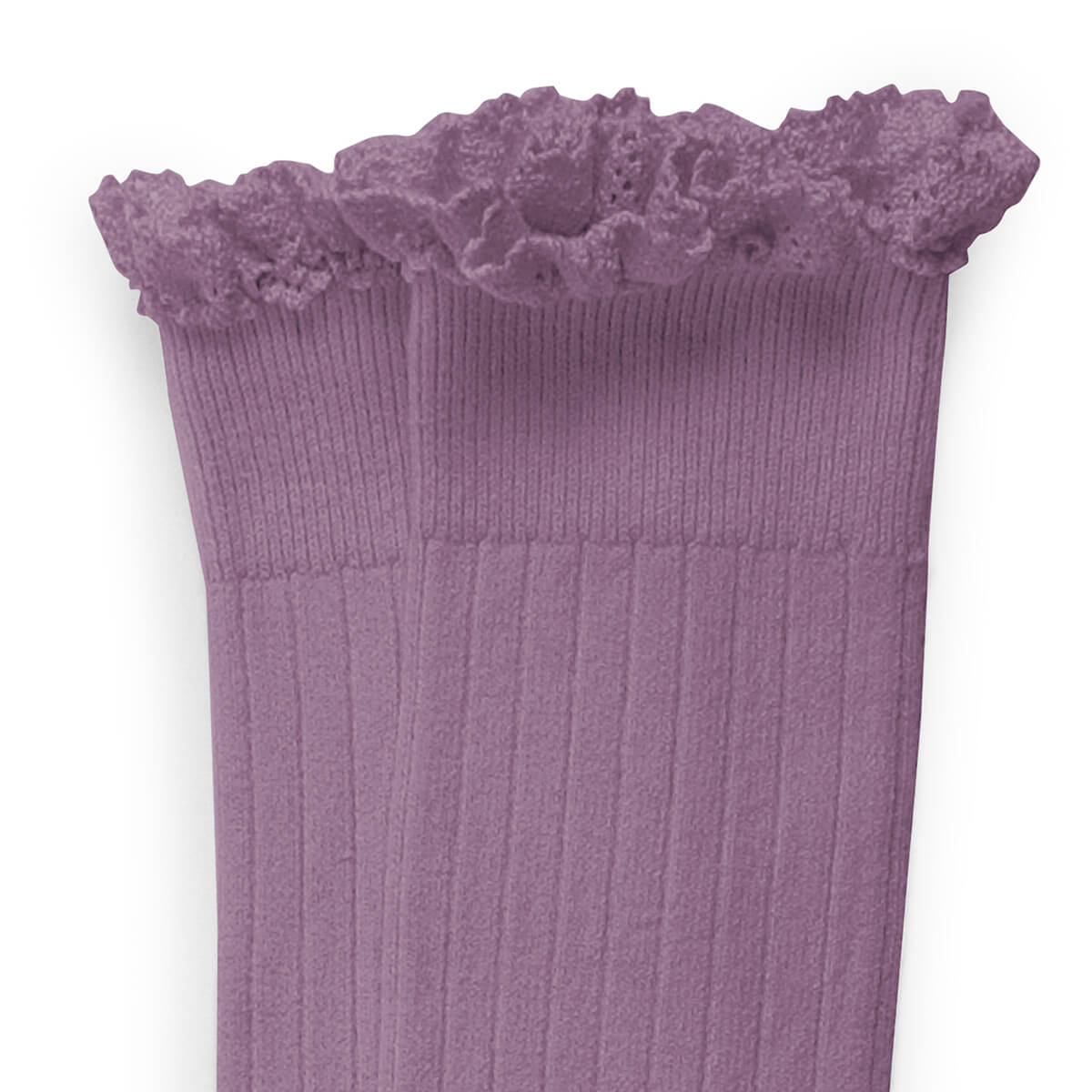 Josephine Lace Trim Ribbed Knee High Socks in Glycine Du Japon by Collegien - Last One In Stock - 1-2 Years
