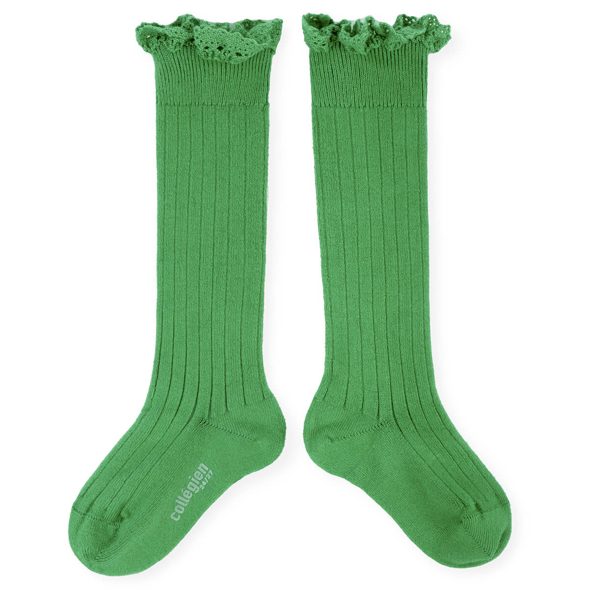 Josephine Lace Trim Ribbed Knee High Socks in Vert Jackpot by Collegien