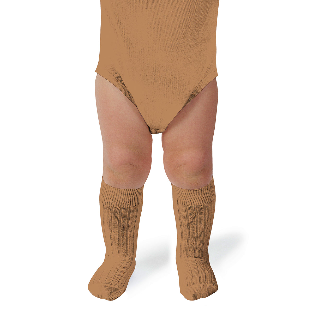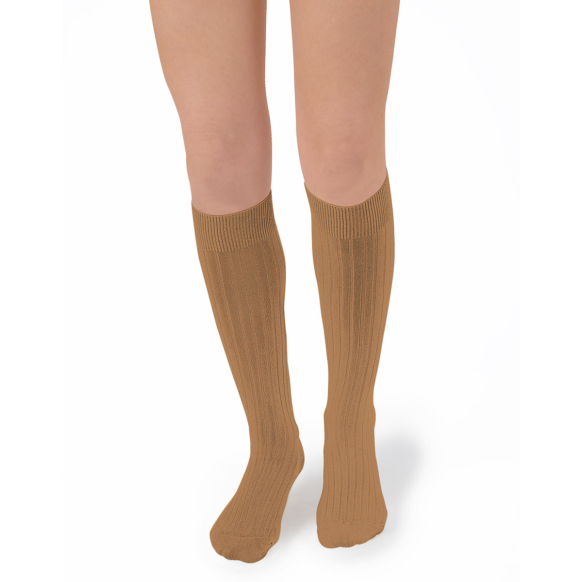 La Haute Ribbed Knee High Socks in Caramel au Beurre Salé by Collegien