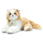Princess Cat by Steiff. Proud and self-assured, she lies in her place, her green eyes wide open, enrobed in silky, cuddly soft plush in light brown and white. The 30 cm tall Steiff Princess cat lives up to her name. Her coat is elaborately crafted – short at the snout, longer around the face and paws, and almost robe-like around her body. The nose, mouth, ears and corners of her eyes are airbrushed in pink. She is a joy to stroke (and Princess loves this, too)! And when you hold her in your arms (which Princess loves even more), you won’t ever want to let her go! She moves stealthily and becomes animated when it’s time to play. Princess is a glamorous cat who is both bright and endearing. Find her and she will reveal her true nature – and suddenly it’s as if she’s purring away contentedly...