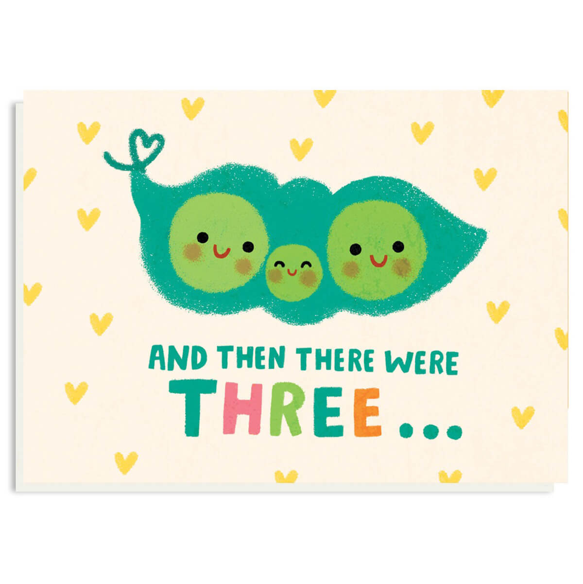 And Then There Were Three New Baby greetings card by Stormy Knight. This new baby card is the perfect gender-neutral card for welcoming a little one to the world! Features a super cute illustration by Grace Habib for Stormy Knight with glossy spot UV details. Blank inside with a FSC approved envelope.