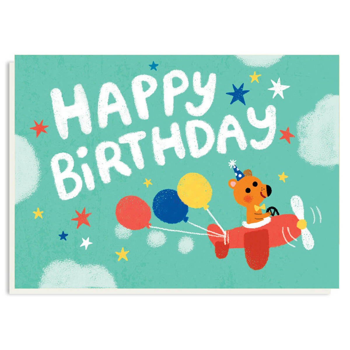 Birthday Bear Plane Greetings Card by Grace Habib for Stormy Knight