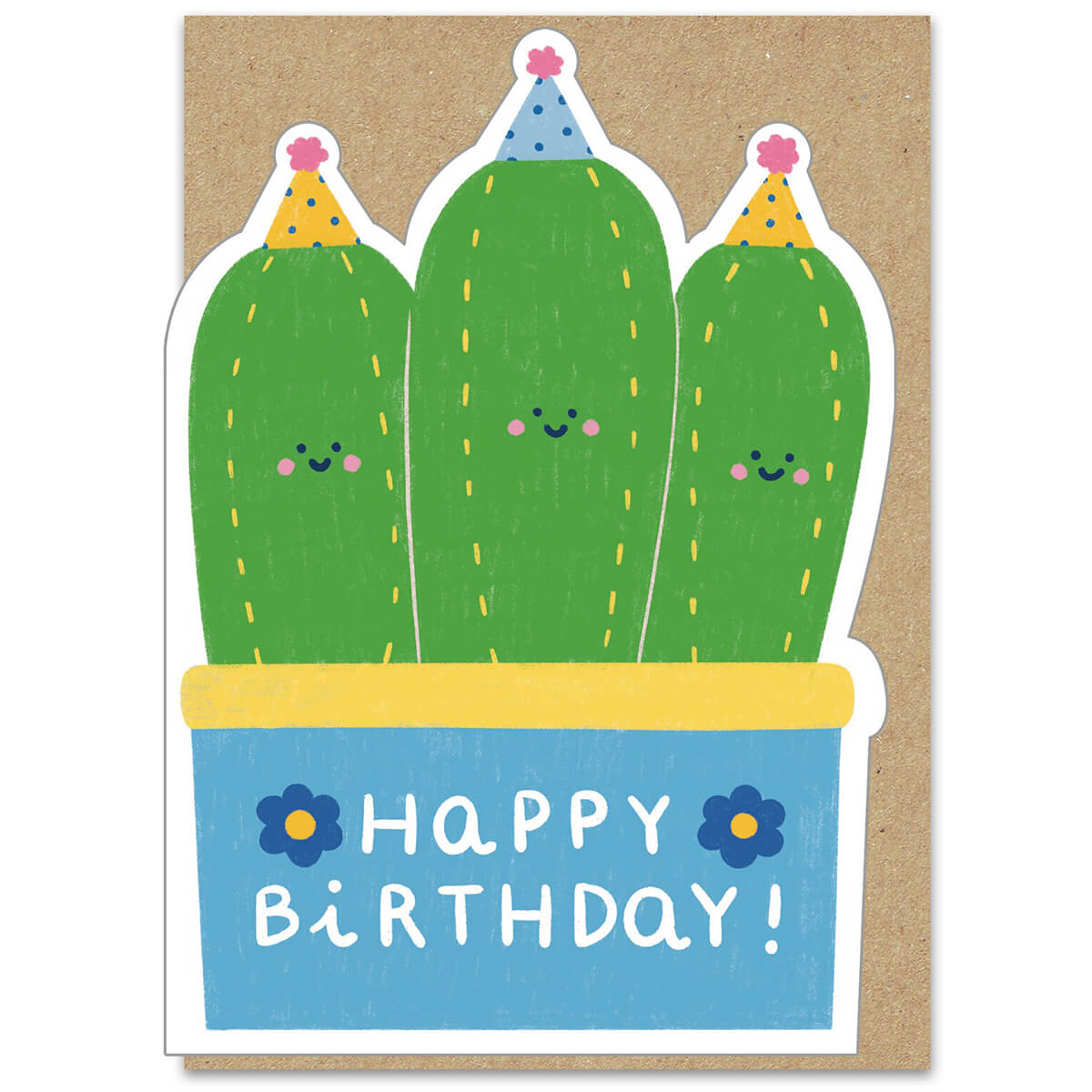 Cactus Club Birthday greetings card by Stormy Knight. Die cut greetings card featuring a super cute illustration by Marylou Chalon for Stormy Knight with glossy spot UV details. Blank inside with recycled fleck craft envelope.