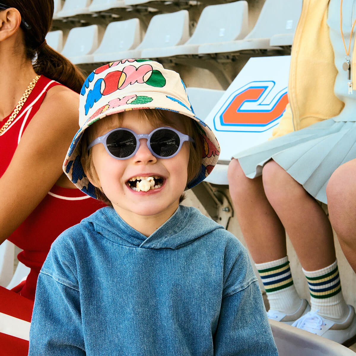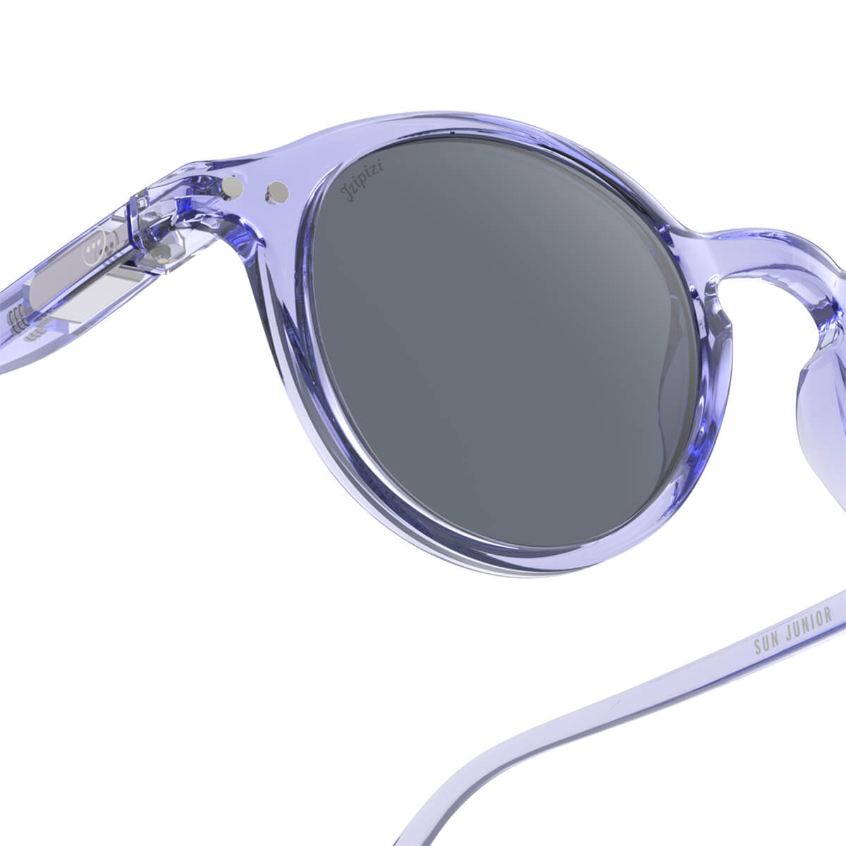 Sun Junior sunglasses style #D (the classic) by Izipizi.  Protects your child's eyes on every occasion, for daily life in town or outdoor activities in summer and winter.  100% UV category 3 protection (UV 400). Flexible and comfortable arms with spring hinges which adapt to all face shapes and sizes. A storage pouch is included in the box.