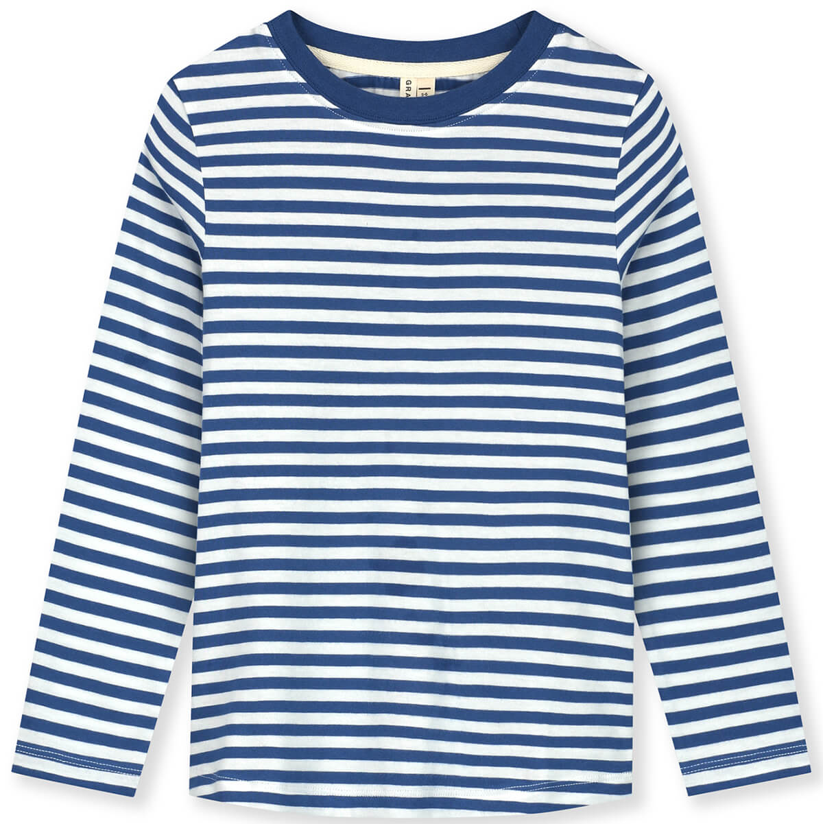 Long sleeve tee by Gray Label. This long-sleeved striped T-shirt is made from soft organic cotton jersey. A slip-on style in a classic stripe, it has a ribbed round neck, neat topstitching and rounded hem. The Gray Label logo is stitched on the side of the right arm, just below the shoulder.