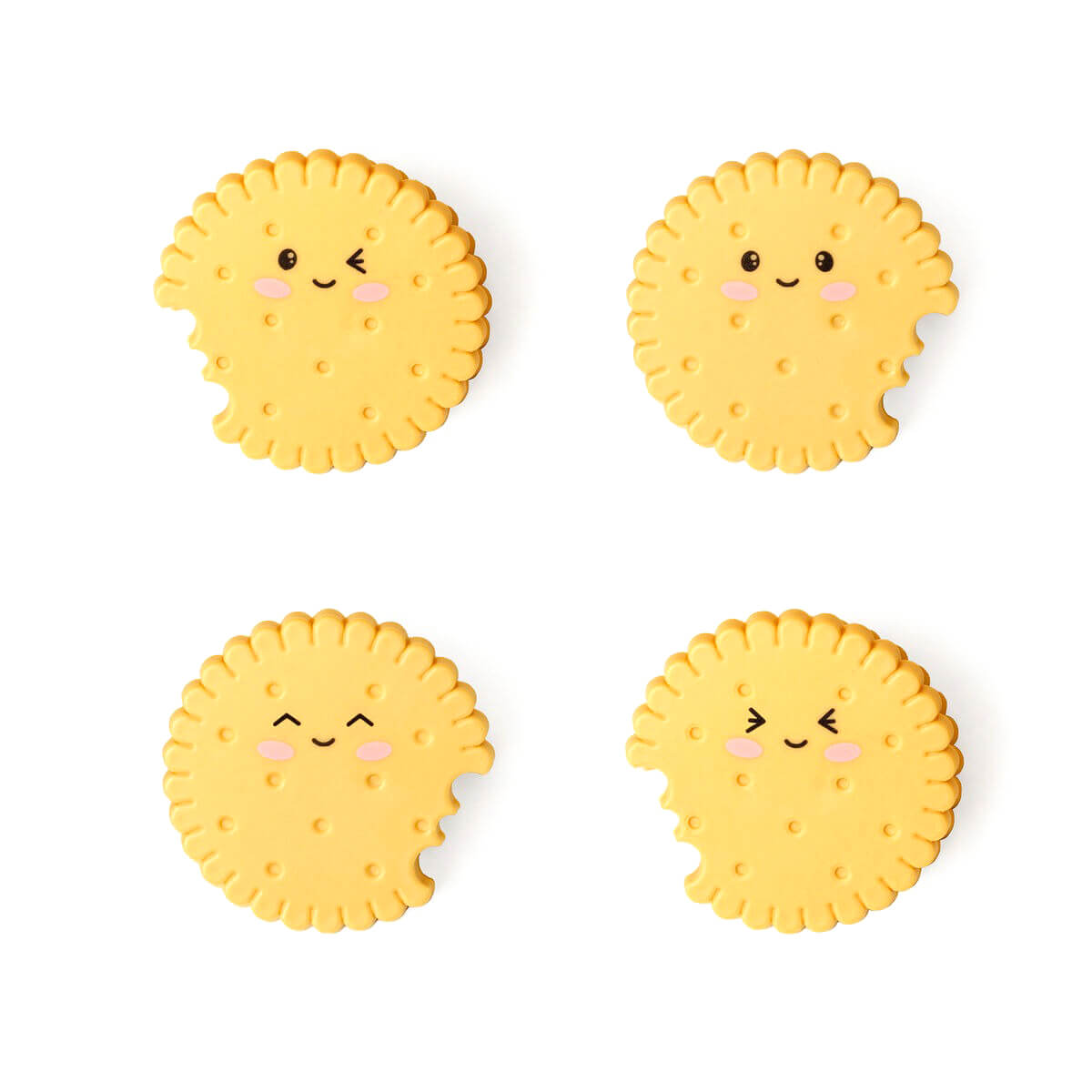 Cookie set of bag clips by Legami. Bring cuteness to your cupboards with these cookie shaped bag clips. Keep the contents of your packets fresher for longer with this set of four fun and practical clips. Perfect for crisps, snacks, cereal bags and much more!