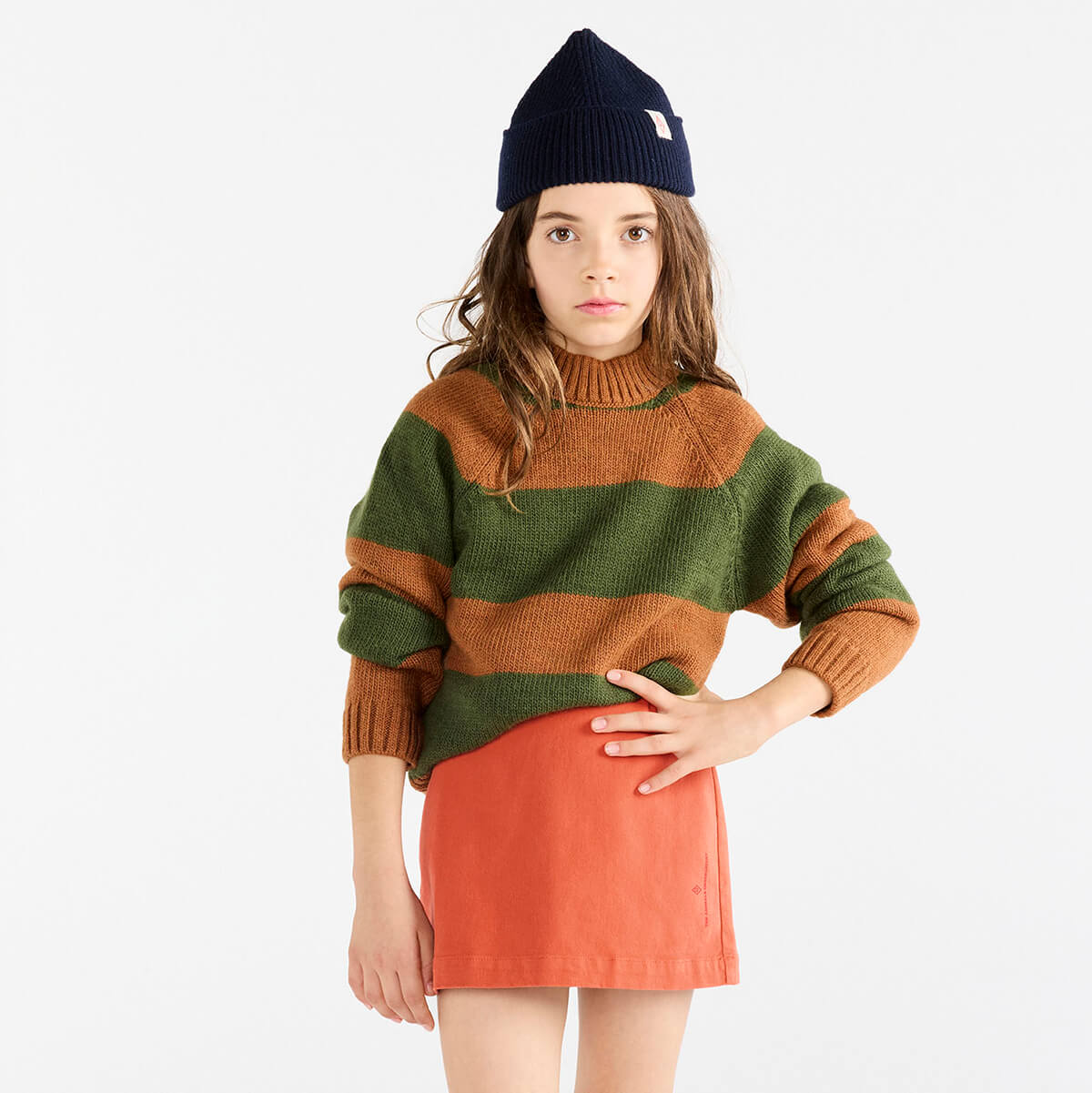 Boxfish Kid Sweater by The Animals Observatory. Warm and adventurous, this striped knit jumper pairs earthy tones with timeless charm.