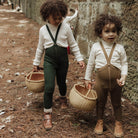 It is important that your little one always wears the tights with braces in the correct way (as shown in all our pictures) with one brace securely placed on the left shoulder and the other brace on the right shoulder in order to avoid abrasions. The braces help little adventurers to freely move while playing and exploring the world and should be always used in the correct position.