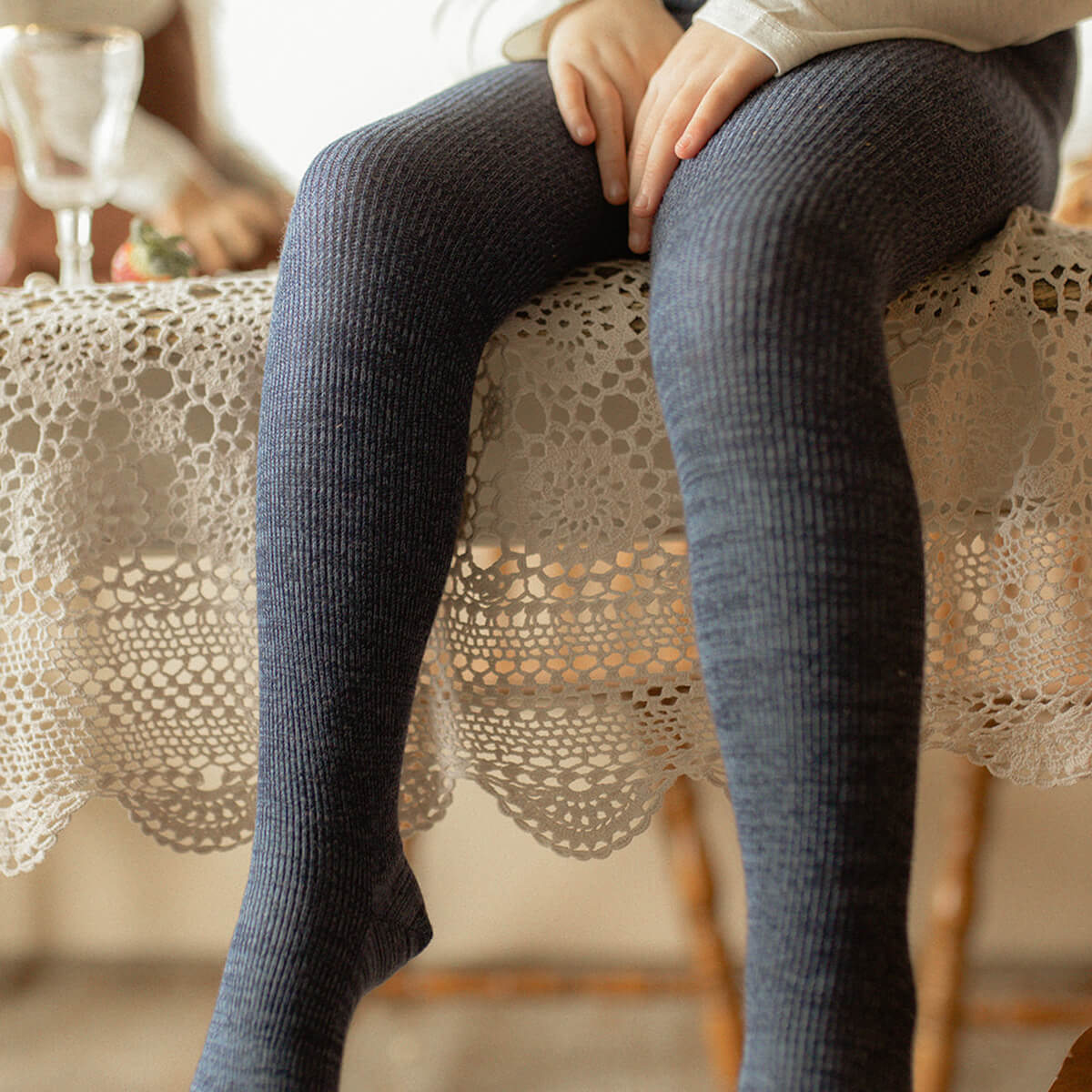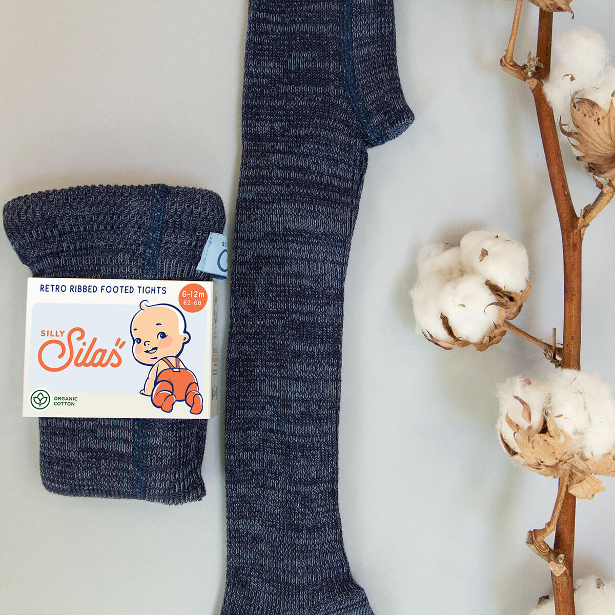 Footed tights with braces by Silly Silas. These retro ribbed footed tights with braces will keep pace with even the most active babies and toddlers. Exceptionally resistant, lusciously soft and made from 100% cotton suitable also for babies with the most sensitive skin.