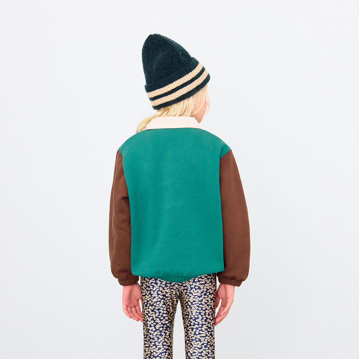 Colour Block Sweatshirt in Dark Green by Tinycottons