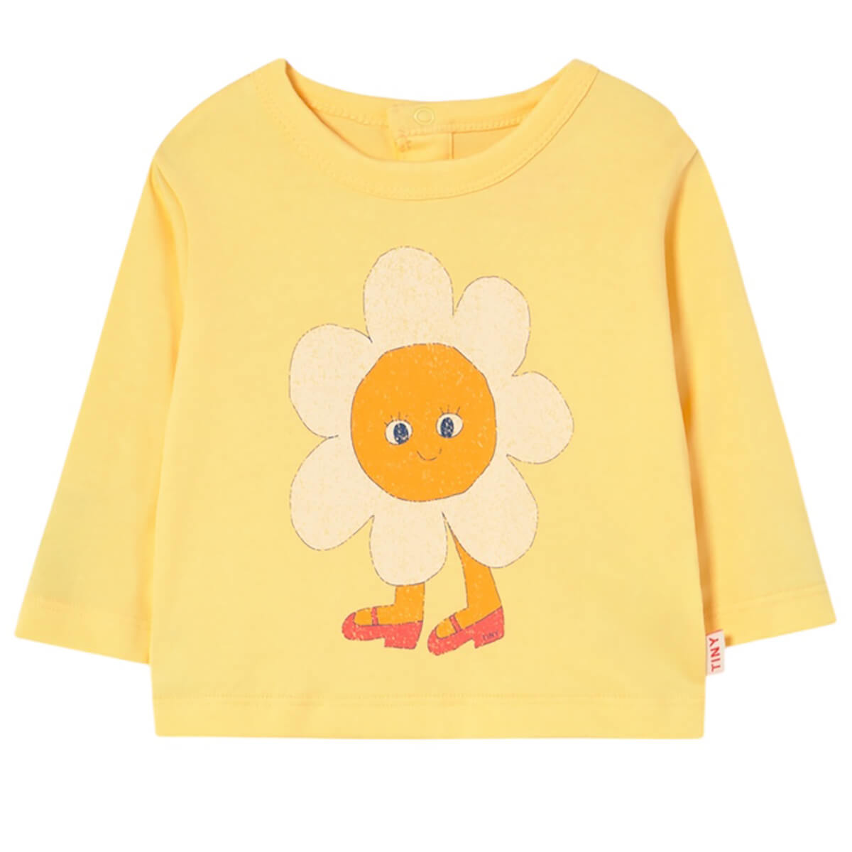 Flowers Graphic Baby Tee in Mellow Yellow by Tinycottons