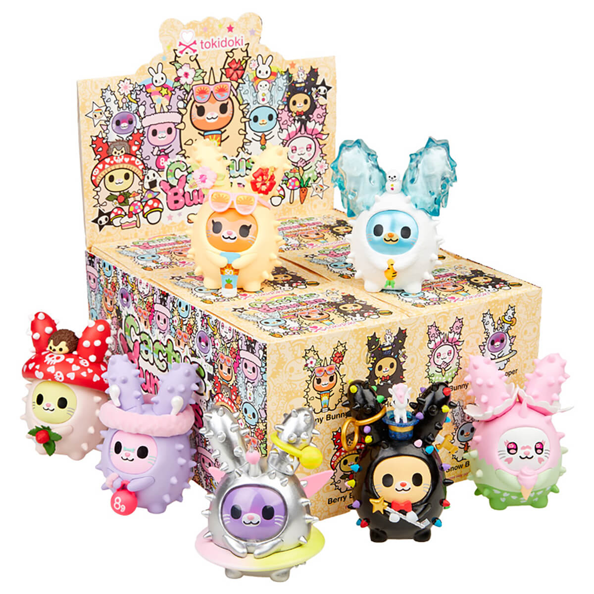 Cactus Bunnies Series 2 Blind Box by Tokidoki. Spring has finally returned, and the Cactus Bunnies are back and ready to hop into your heart! Cactus Bunnies Series 2 Blind Box features more of the spiky bunny family doing what they love to do, like enjoying a sunny day, lifting weights, performing magic tricks, and more! Jump for joy and hop for happiness with Cactus Bunnies Series 2 Blind Box!