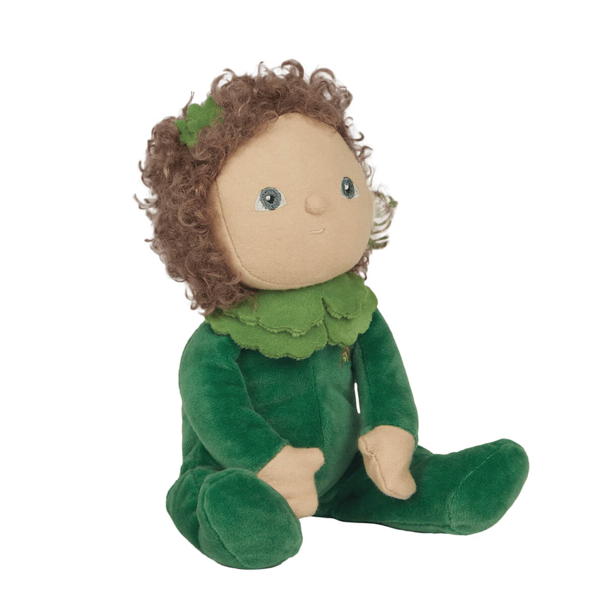 Gene Greens Happy Harvest Dinky Dinkums Doll by Olli Ella. Gene Greens is the kale-tastic star of the Happy Harvest series. Decked out in his leafy green suit and leafy greens inspired collar, Gene is the crown jewel of the veggie patch. He's as cuddly as a kale leaf and as vibrant as a bunch of fresh chard.