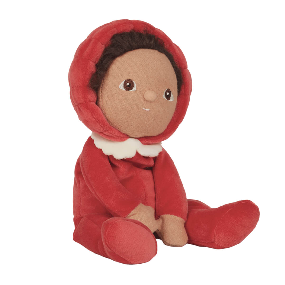 Marley Mushroom Happy Harvest Dinky Dinkums Doll by Olli Ella. A marvellous fungi friend, With a red velvet onesie and adorable hood, Marley is the epitome of cozy charm. Whether Marley is peeking out from under fallen leaves or exploring the forest floor, Dinky Dinkum Marley Mushroom brings a touch of enchantment to every adventure.
