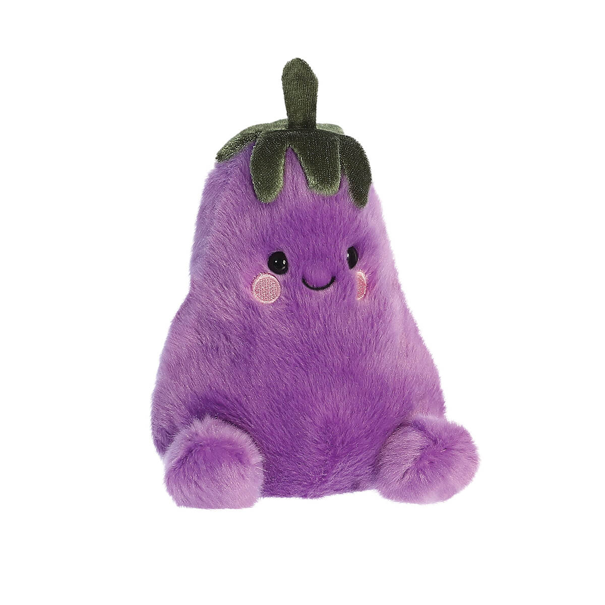 Aubrey Eggplant Palm Pal by Aurora. This cute aubergine fits into the palm of your hand and is full of beans which makes it super soft and cuddly. Aubrey Eggplant's body is a soft purple plush material with embroidered details. Palm Pals make great gifts for any occasion. Suitable from birth.