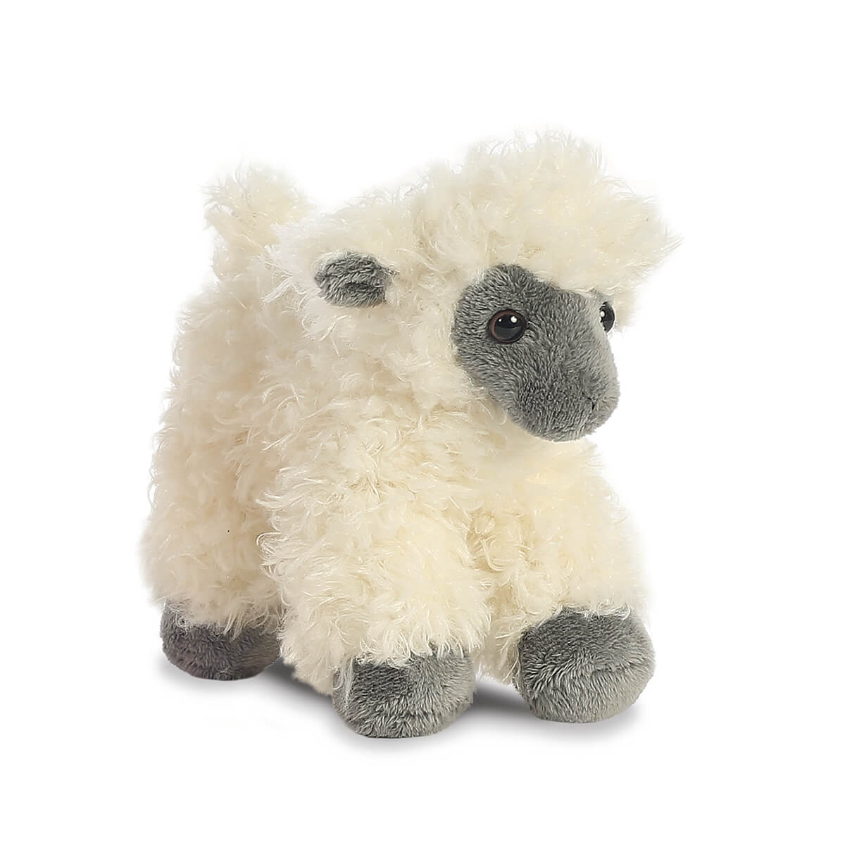 Mini Flopsie Black Faced Sheep by Aurora. Mini Flopsies make it easy for you to really get to grips with the eloquence and beauty of animals from across the world. The sheep is in a laying position but the beans inside the body mean that she can be posed. Beans inside the body mean they can be posed in several ways taking on much of the shape of the real animal and creating a very engaging, endearing friend. Made from the finest quality of materials to ensure that they can withstand even the roughest of playtimes.