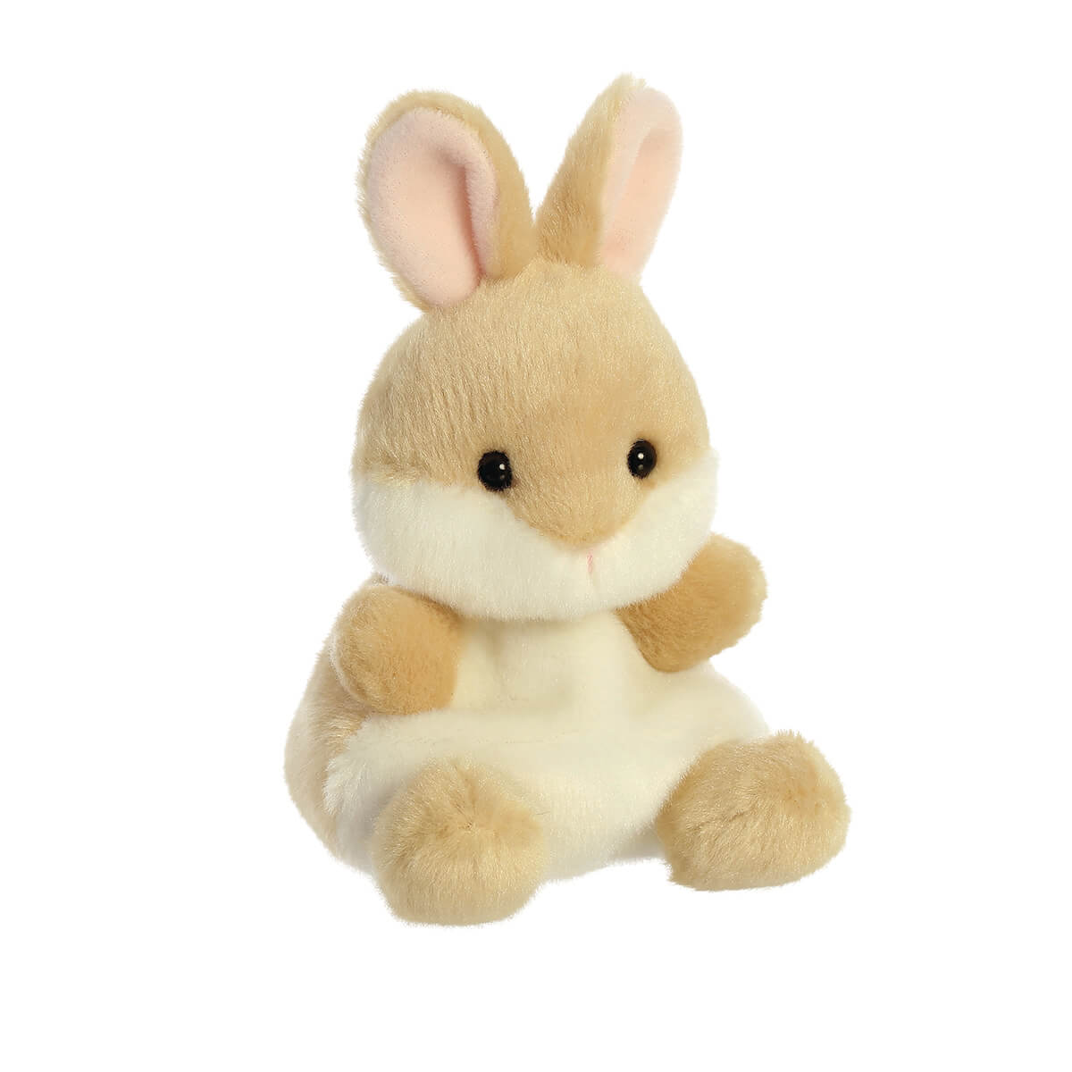 Ella Bunny Palm Pal by Aurora. This cute rabbit fits into the palm of your hand and is full of beans which makes it super soft and cuddly. Ella Bunny's body is a soft brown and cream plush material with a plump little belly. Palm Pals make great gifts for any occasion. Suitable from birth.