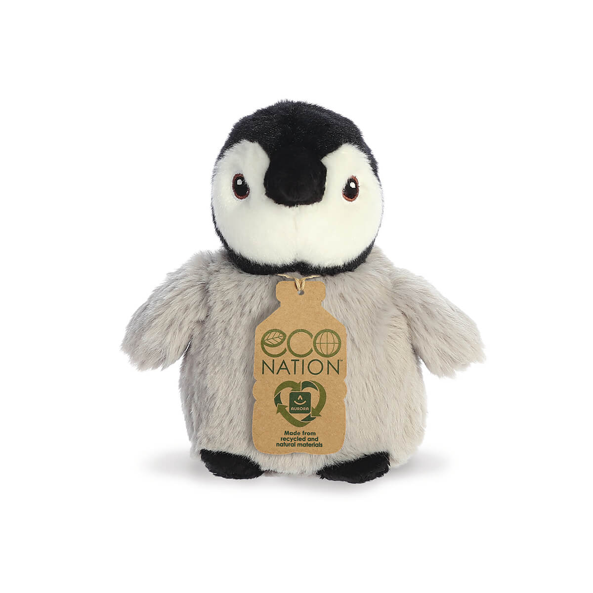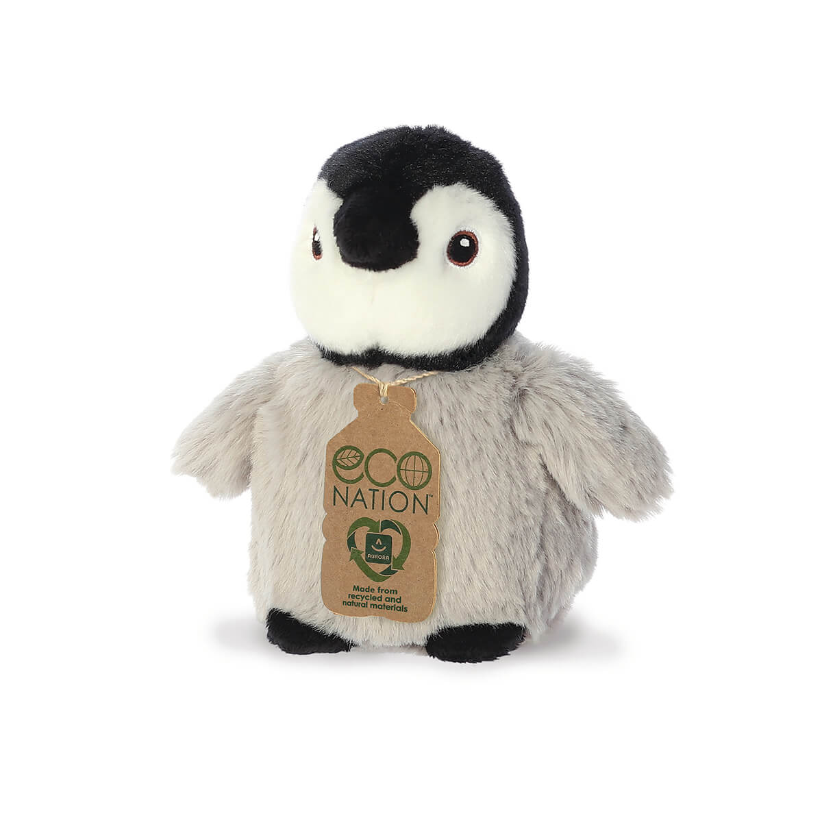 Mini Penguin Eco Nation Soft Toy by Aurora. This sweet little penguin was once a plastic bottle. This includes the outer plush material and also the fibre fill. The perfect gift for animal lovers.