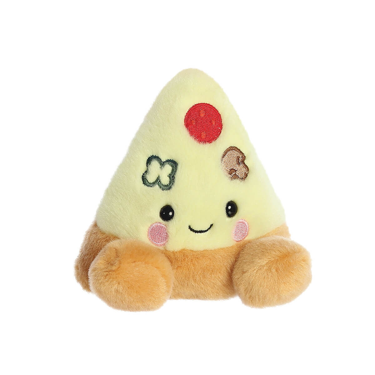 Peppa Pizza Slice Palm Pal by Aurora. This cute pizza slice fits into the palm of your hand and is full of beans which makes it super soft and cuddly. Peppa Pizza Slice's body is a soft yellow and brown plush material with embroidered pizza toppings. Palm Pals make great gifts for any occasion. Suitable from birth.