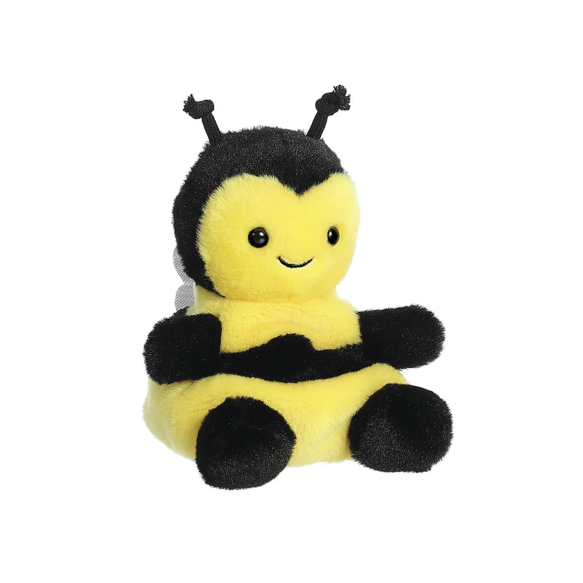 Queenie Bee Palm Pal by Aurora. This cute bee fits into the palm of your hand and is full of beans which makes it super soft and cuddly. Queenie Bee's body is a soft yellow and black plush material with a plump little belly and silver wings. Palm Pals make great gifts for any occasion. Suitable from birth.