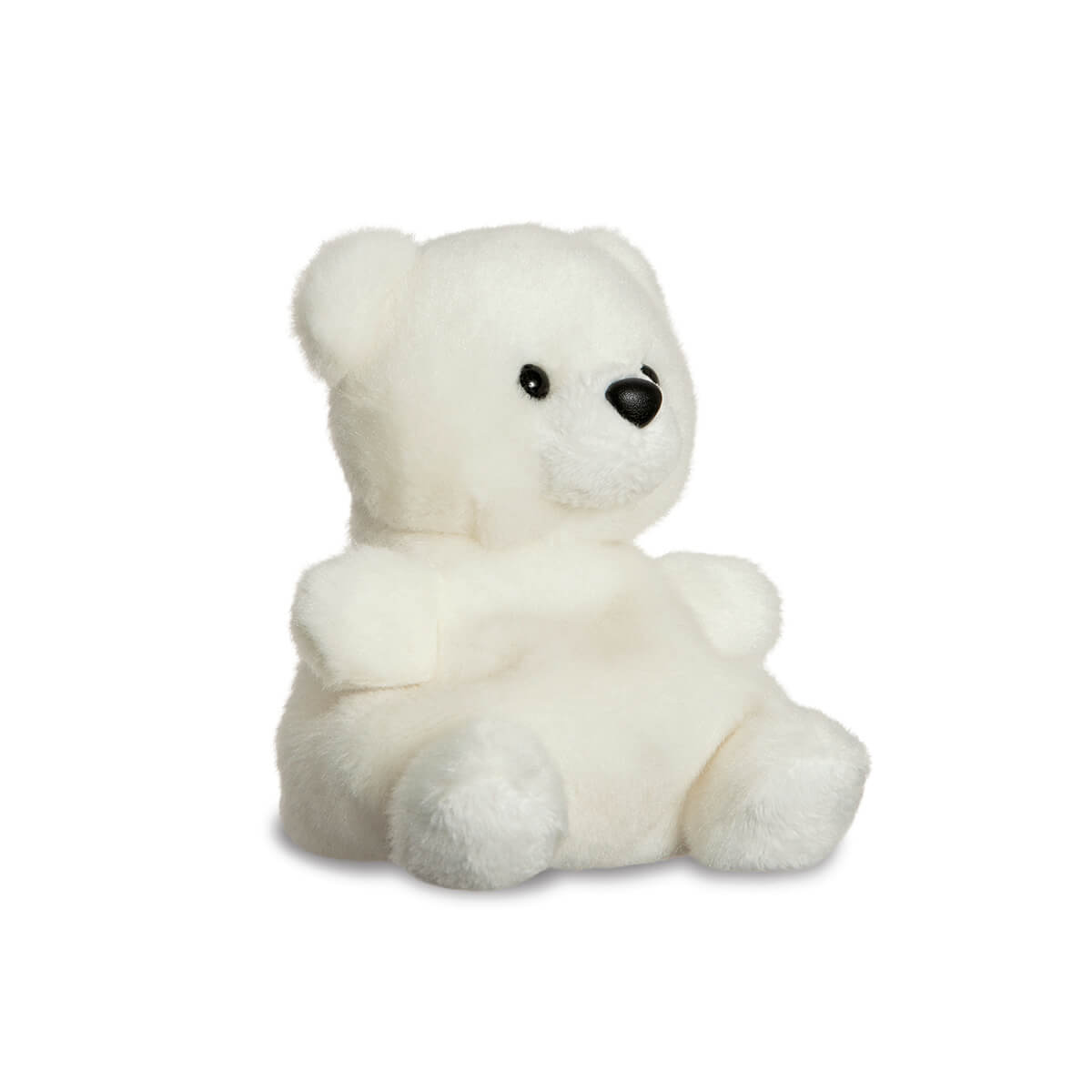 Snow Polar Bear Palm Pal by Aurora. This sweet polar bear fits into the palm of your hand and is full of beans which makes it super soft and cuddly. Snowy Polar Bear's body is a soft white plush material. Palm Pals make great gifts for any occasion. Suitable from birth.