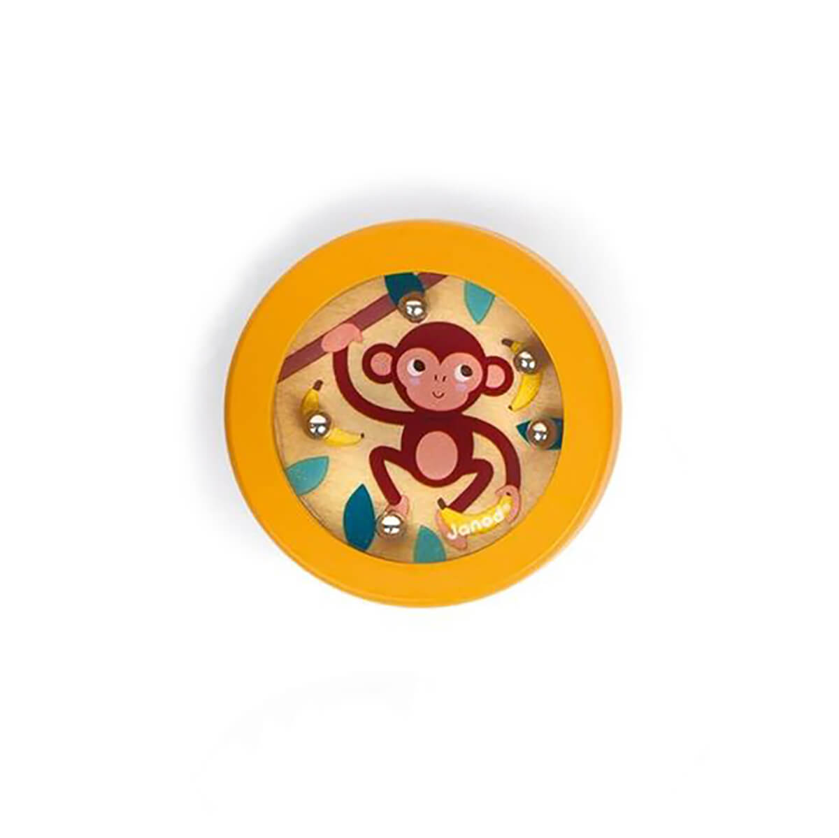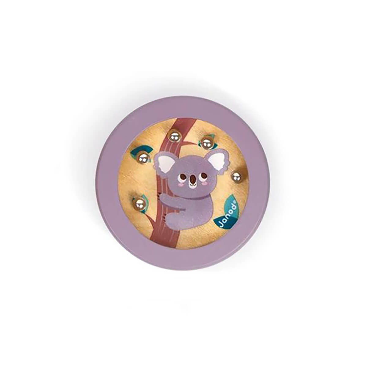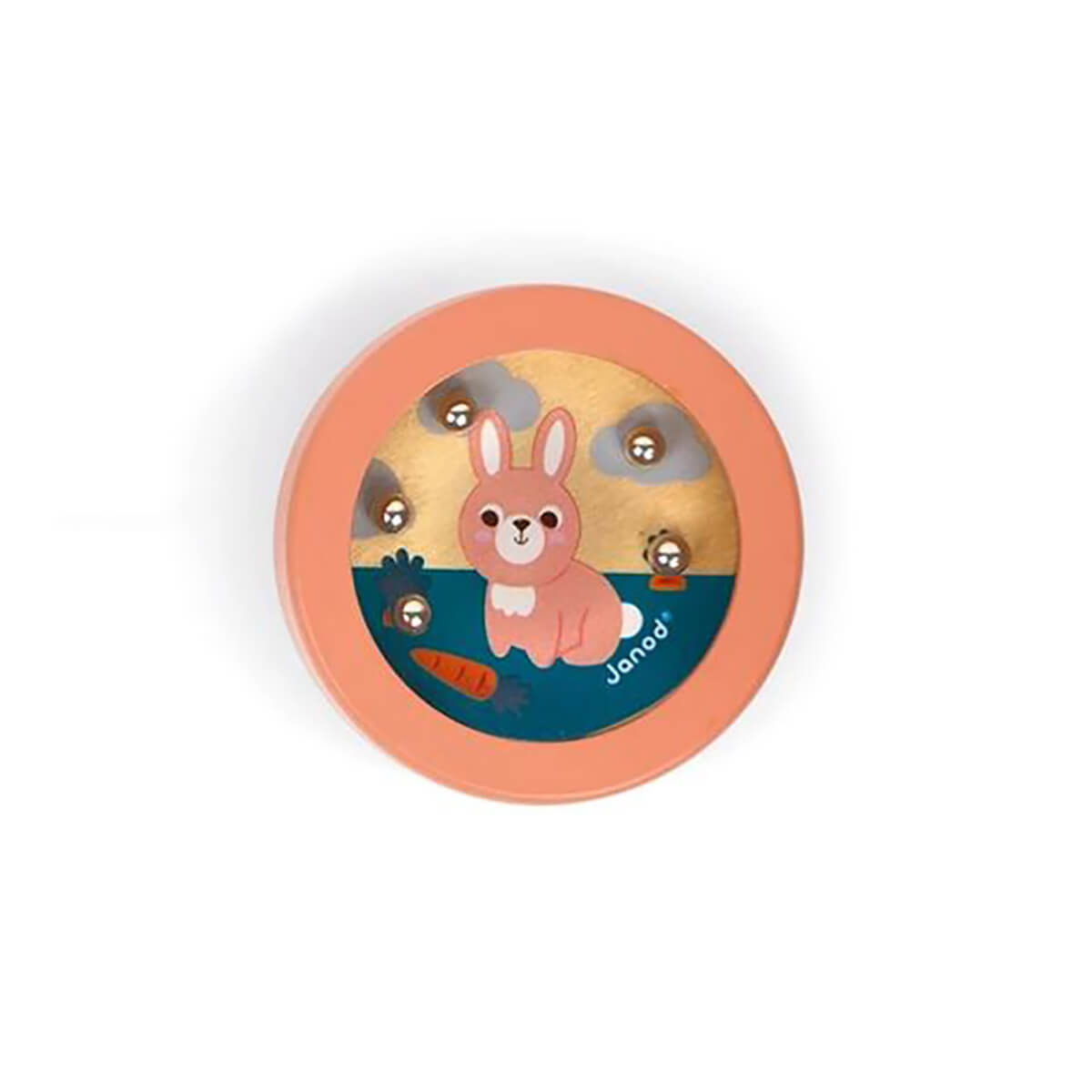 Pocket bead game by Janod. Children must exercise patience and dexterity to place the 5 metal beads in their hole.