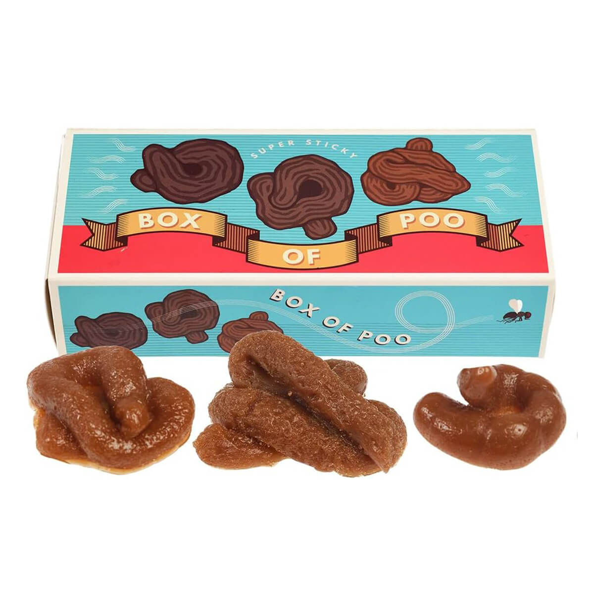 Box of Sticky Poo by Rex London. Kids will love this silly practical joke! This box contains three different sticky, realistic looking fake poos - great for leaving around the place to trick friends and family.
