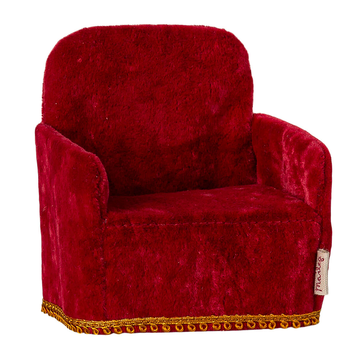 Mouse chair by Maileg. A perfect place for your small Maileg friends to take a rest. It fits nicely into the Mouse hole Farmhouse. The chair is delivered flat packed and is easy to fold and assembly.