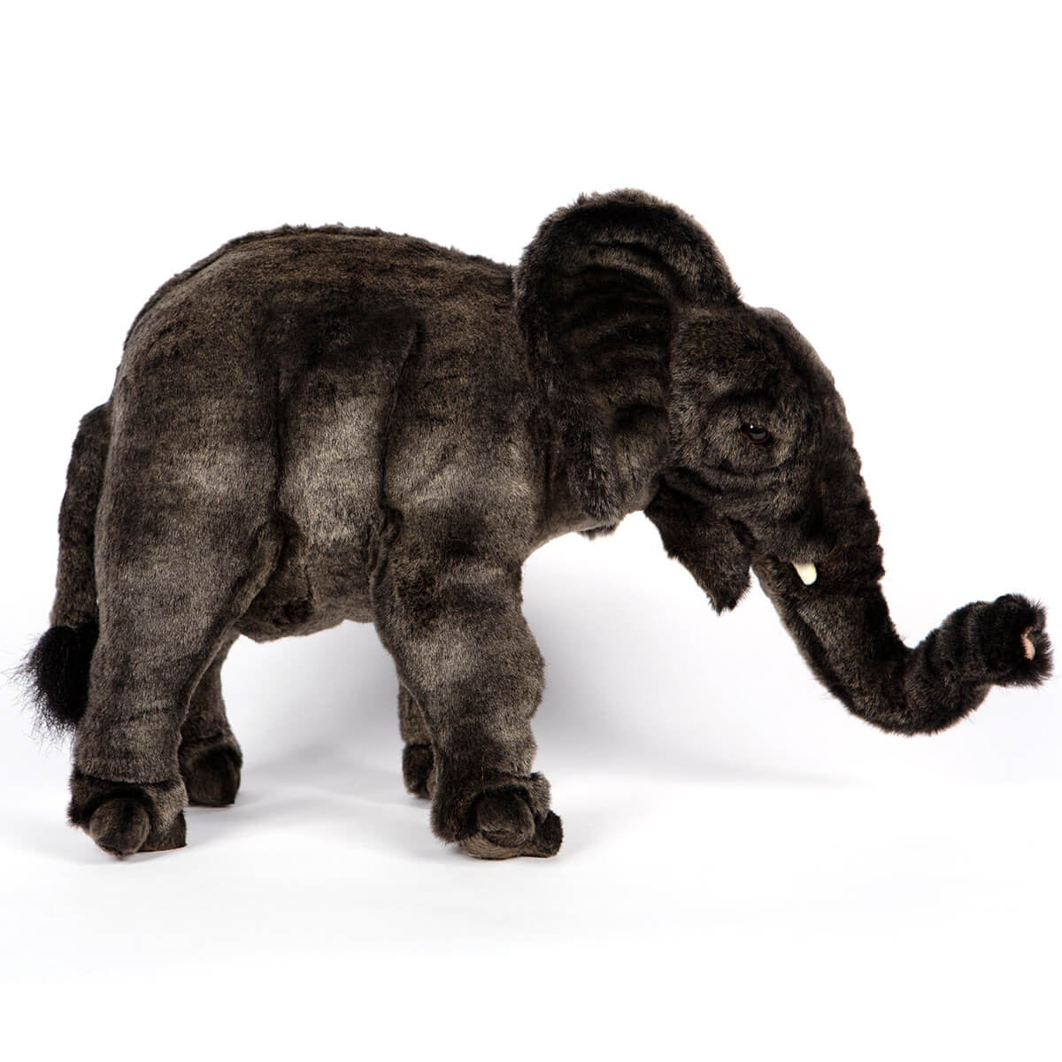 Standing elephant plush soft toy by Hansa. Heirloom quality hand crafted plush stuffed animal.