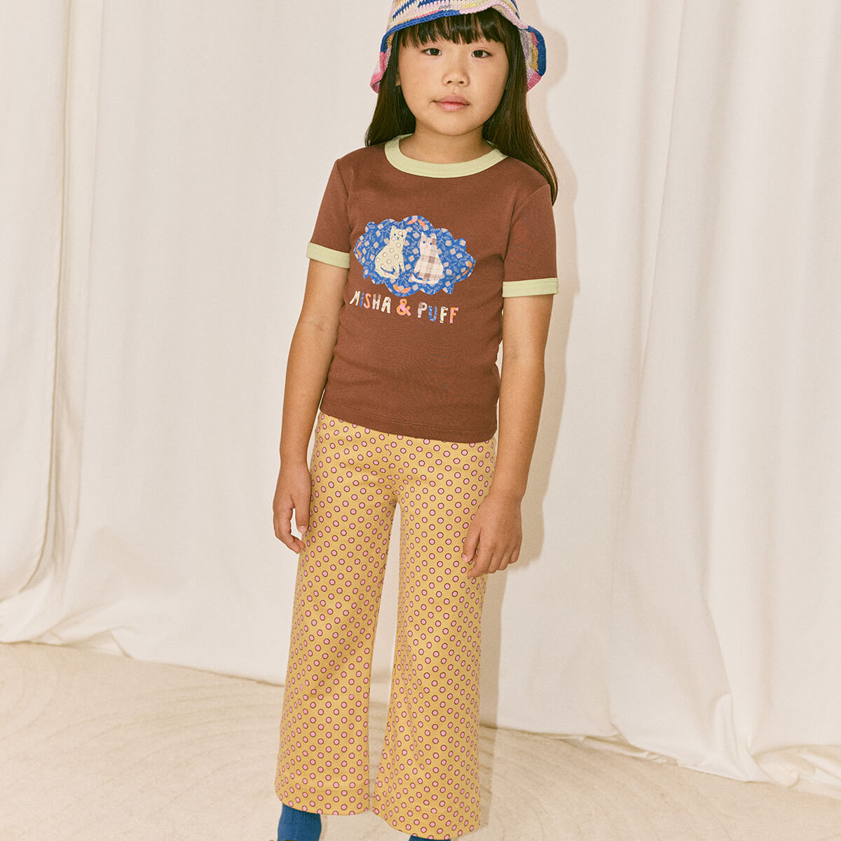 A-Pant by Misha & Puff. A fitted pull-on pant in organic cotton, featuring a slight A-shaped flare, and a soft banded elastic waistband. This cotton is slightly thicker than Misha & Puff's Pima styles, with a touch of structure that holds shape.