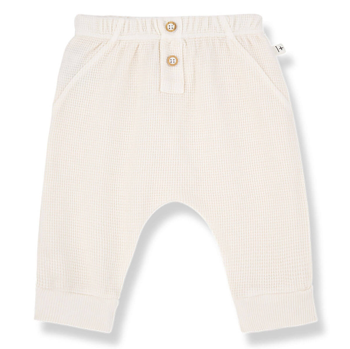 Sunion Pants by 1+ in the Family. Jersey waffle baby trousers with a drawstring waist.
