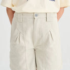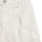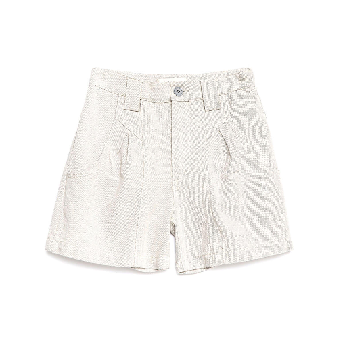 Shorts nº13 by True Artist. Shorts nº13 in Glacier Grey are made of 56% recycled cotton and 44% cotton. These highly detailed shorts feature the TA logo embroidered on the front and they are designed with front slash pockets and back patch pockets. They have front zip and button fastening and have a straight fit.