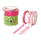 Avocado Tape By Tape Box Of Five Paper Sticky Tapes by Legami. Five rolls of washi tape in various widths and cute designs. With a length of 5 metres and a vibrant palette, these sticky tapes will brighten up your packages, papers and collages instantly.