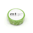 Matte Yellowgreen 15mm 1P Basic washi tape by MT Japan. Single colour roll from the MT 1P Basic range of coloured masking tapes. The 1P Basic range features solid colours and can be used to add a splash of colour to any craft project, planner or journal. They are ideal for popping in planners as they make excellent highlighters and are easy to write on.
