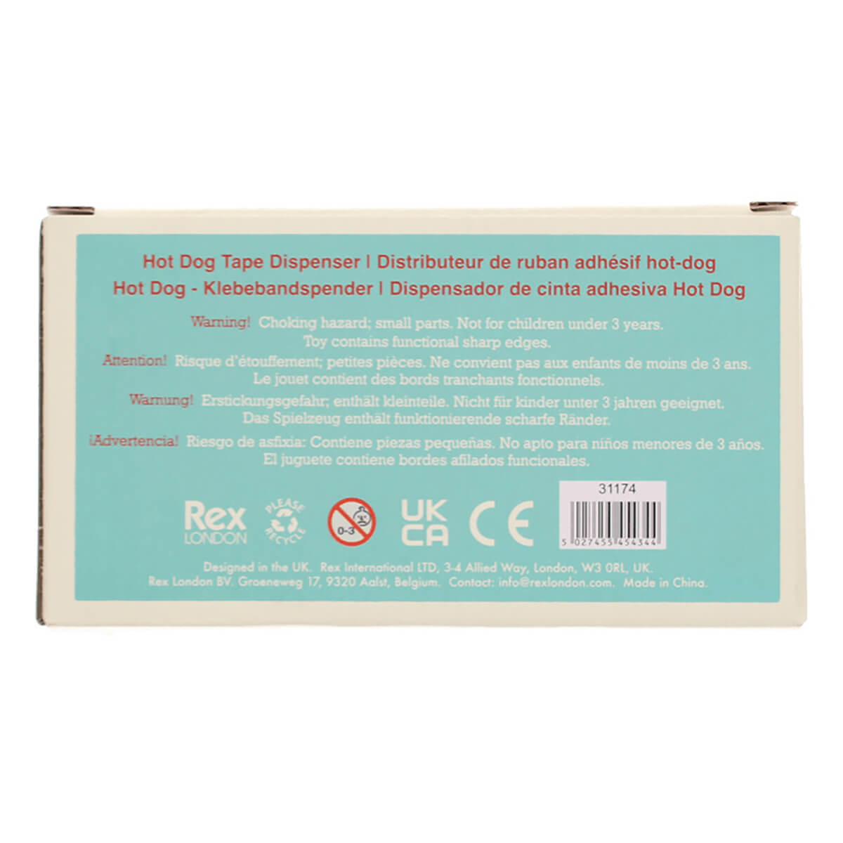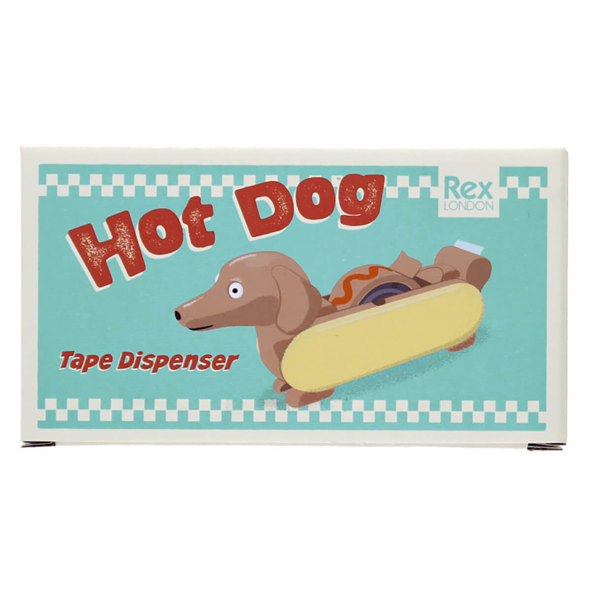 Tape Dispenser by Rex London. Never lose your tape again with this hot dog dispenser. Featuring a hilarious design of a sausage dog in a bun (complete with ketchup), it adds a smile to any office, desk or school day. Compatible with small rolls of tape, measuring up to 1.8cm wide × 10m long, with a 2.5cm diameter centre hole (one roll is supplied).