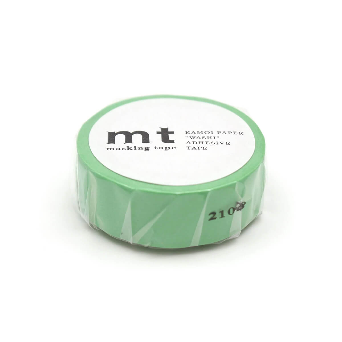 Wakamidori 15mm 1P Basic washi tape by MT Japan. Single colour roll from the MT 1P Basic range of coloured masking tapes. The 1P Basic range features solid colours and can be used to add a splash of colour to any craft project, planner or journal. They are ideal for popping in planners as they make excellent highlighters and are easy to write on.