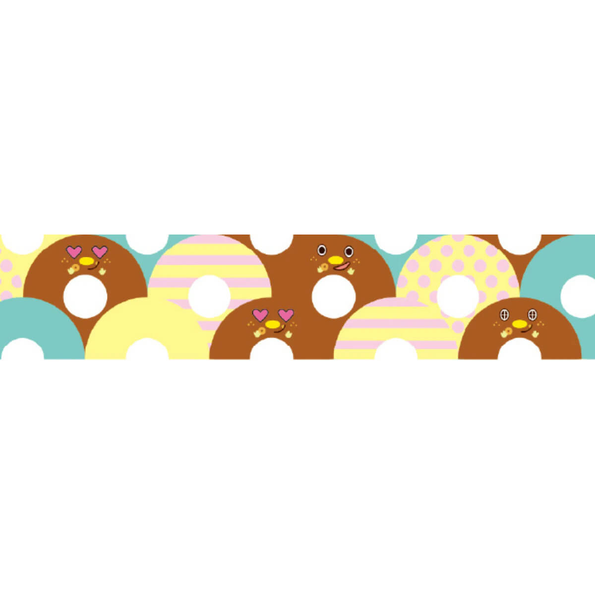 Young-Kun Colorful Circles 15mm Special Dagashi washi tape by MT Japan. Graphic and brightly coloured tape featuring Young-Kun donut characters and pastel coloured circles. From a special series of washi tape inspired by popular and iconic dagashi Japanese snacks, sodas and candies.