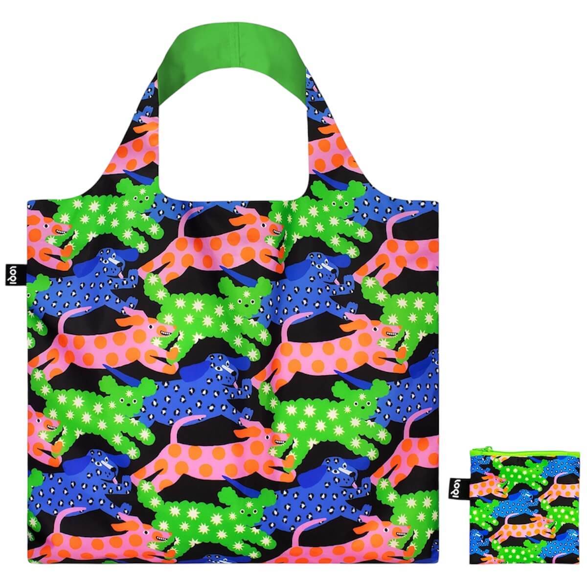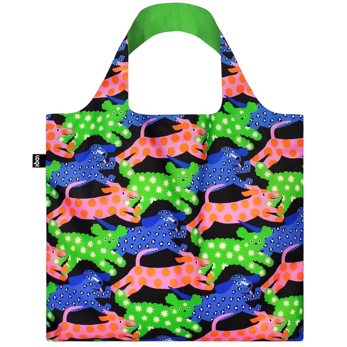 Glitter Power Dogs Recycled Shopping Bag by Loqi. Vibrant canine designs meet sustainability in this playful, eco-friendly bag—perfect for dog lovers with a bold sense of fun. Whether leopard or spots, we’ve got your dog style covered with this recycled bag!