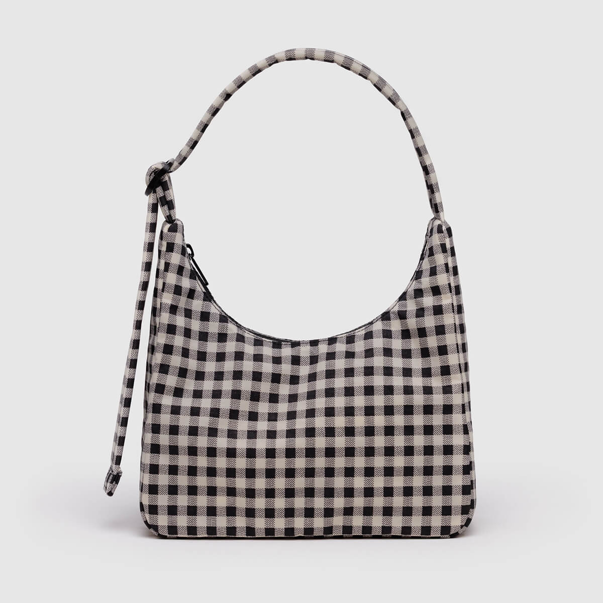 Mini Nylon Shoulder Bag in Black and White Gingham by Baggu
