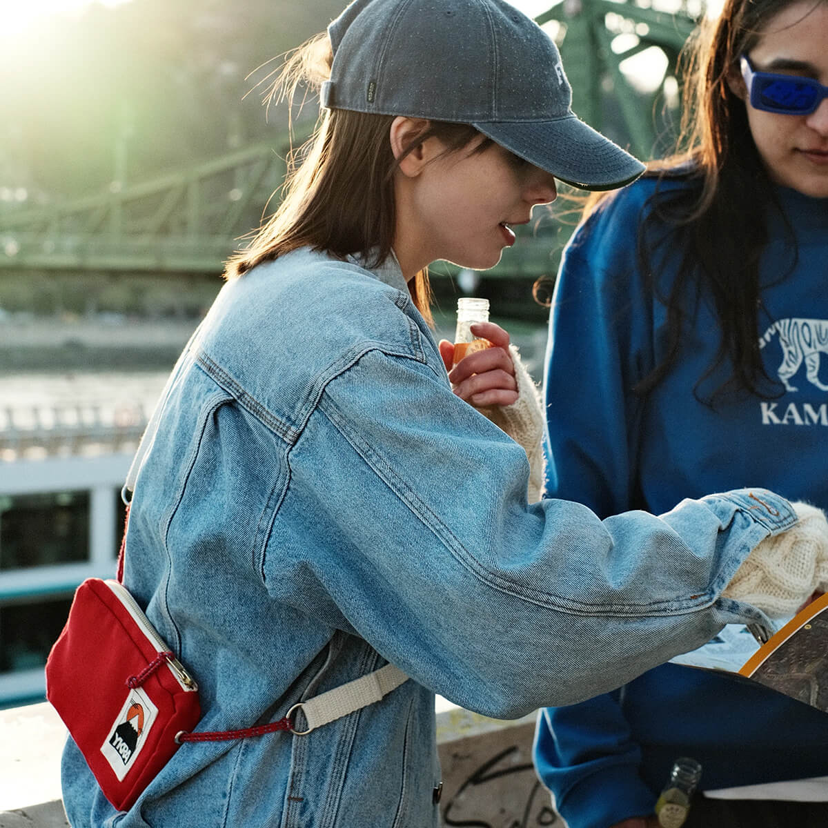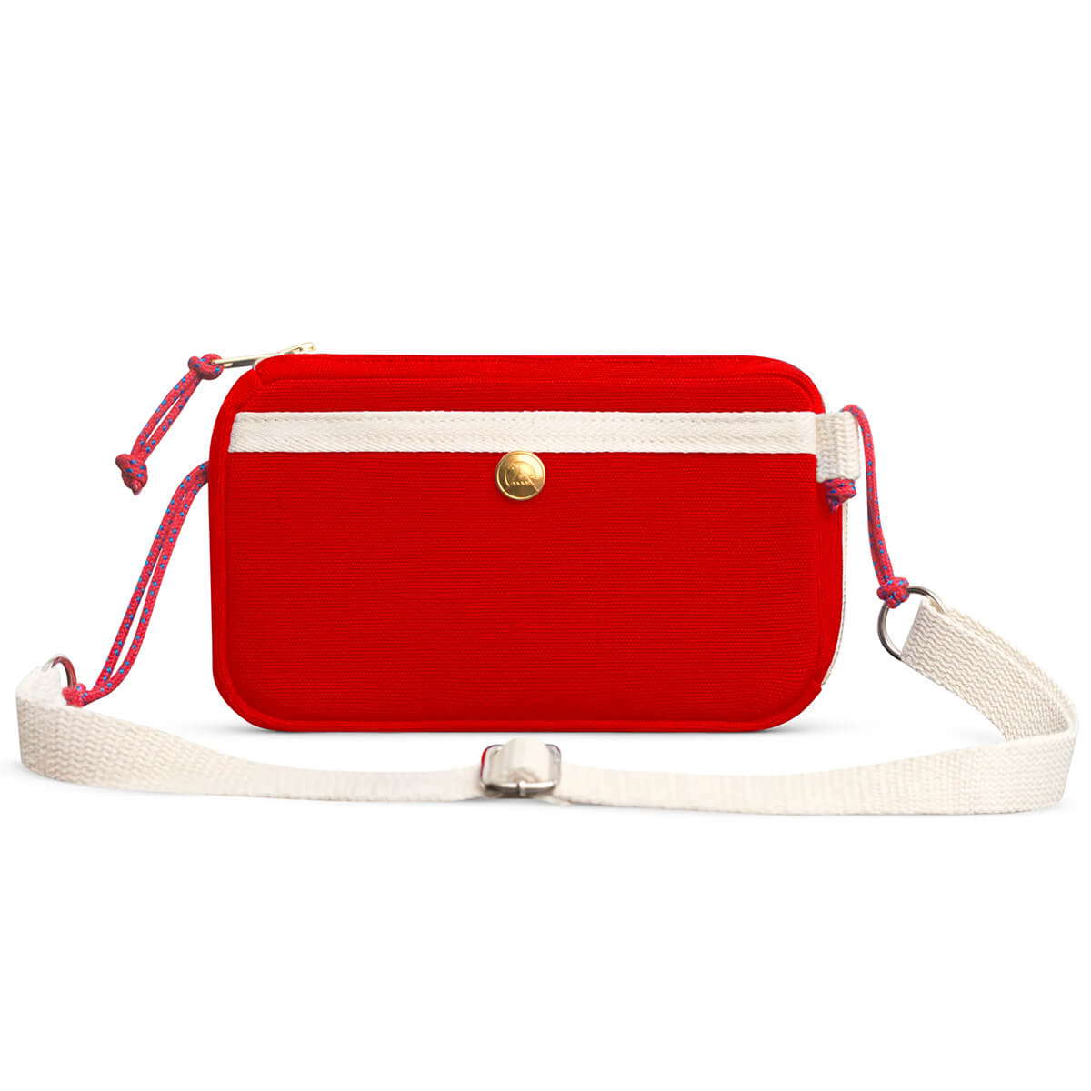 Travel Case bag by YKRA. A compact and practical small bag to keep your essentials organised and secure while you're on the move. Designed for travellers without pockets, who wish to hold their valuables on themselves, the travel case is ideal for holding your essential travel items such as your passport, wallet, keys, and more. It also features a back pocket with a press stud closure, providing a safe and secure place for your phone or sunglasses. The vintage-style metal YKK zipper opens to the side for easy access, and the adjustable cotton canvas strap allows you to wear it as you wish. Whether you're going on a weekend getaway or exploring a new city, it will be a great companion for all your adventures.