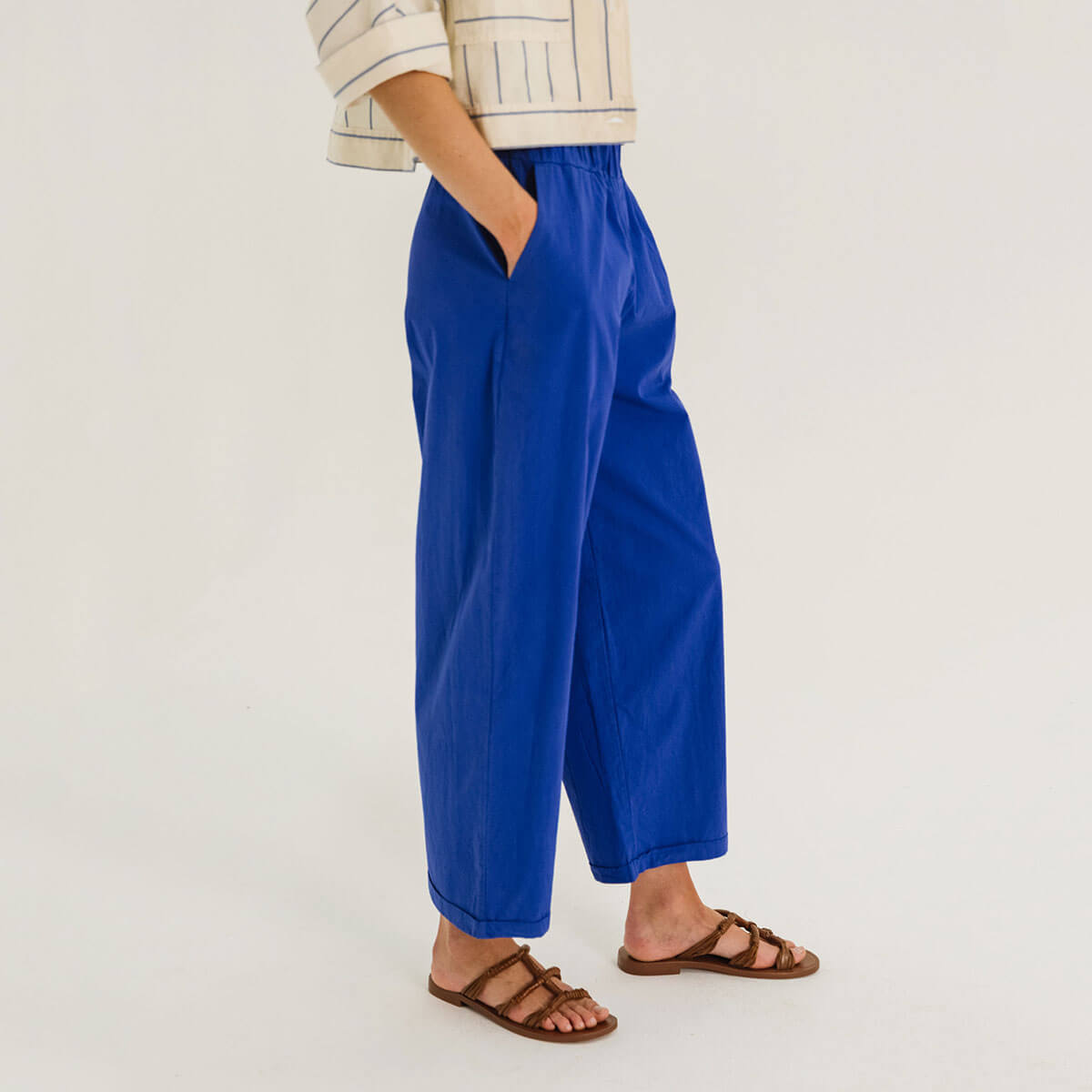 Jilma Pants in Sodalite Blue / White Check by ICHI