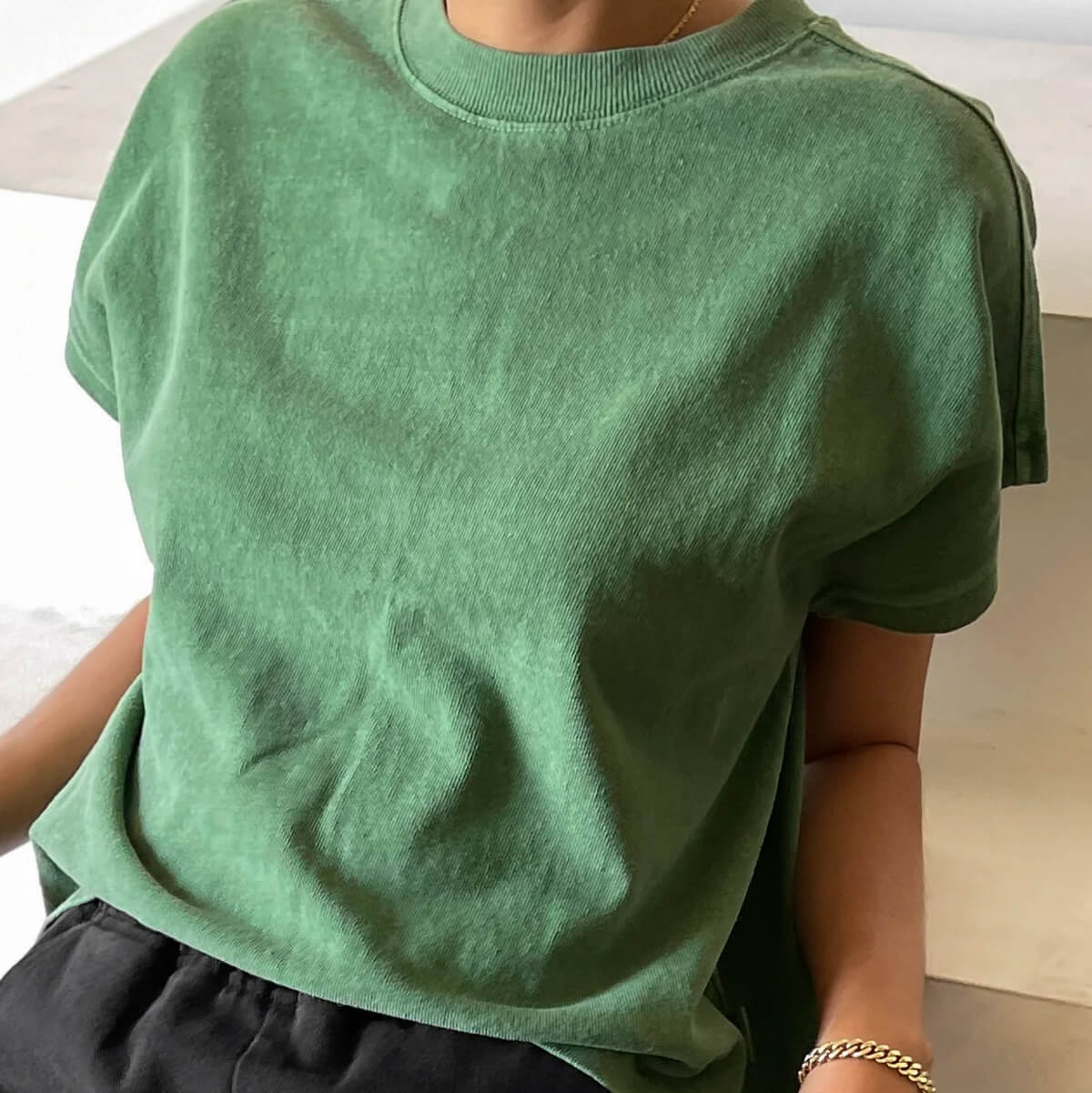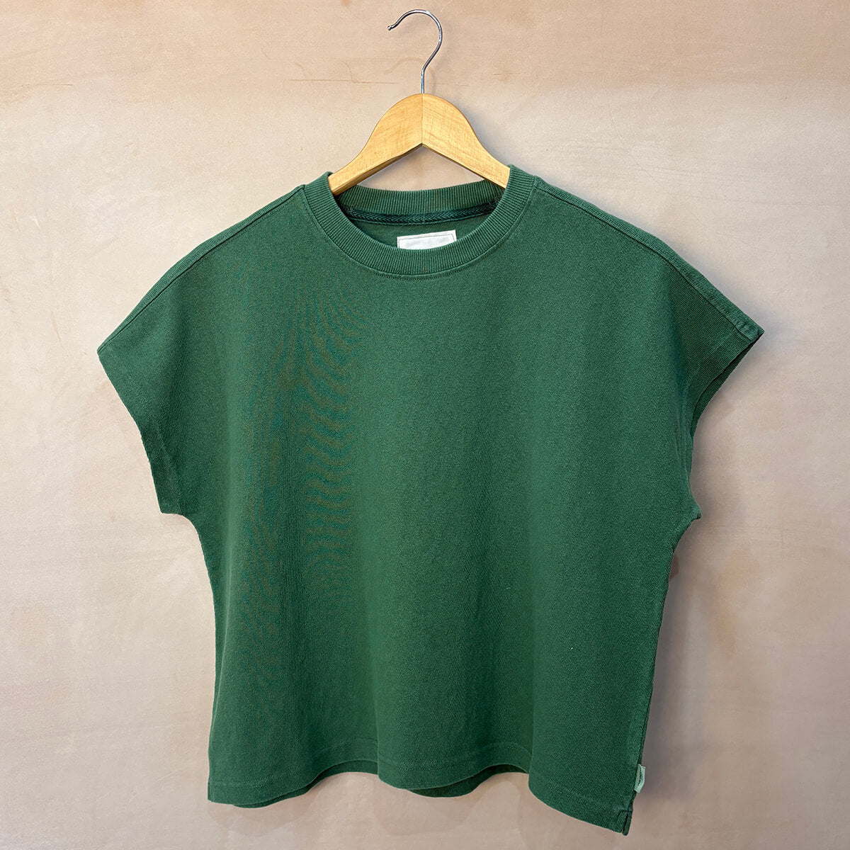 Jeanne Tee by Le Bon Shoppe. The perfect muscle tee. Featuring a shorter length to pair perfectly with high waisted bottoms but still give enough coverage for mid-rise bottoms and just the right amount of off shoulder dolman sleeve. It has a high crew neck with an extra wide neckband that adds to it's signature charm.
