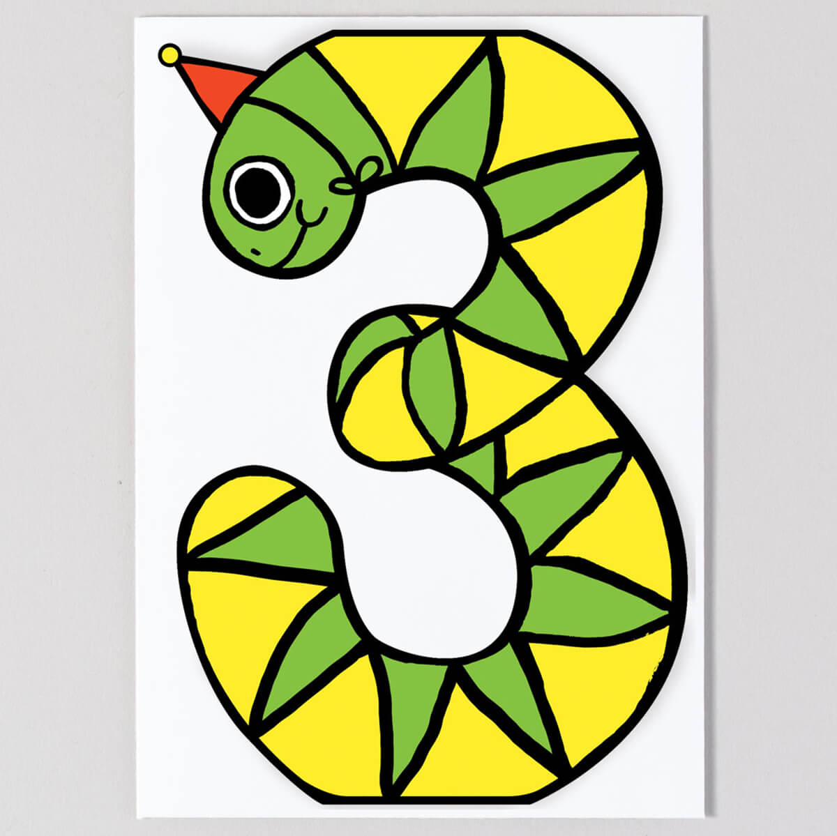 Snake 3rd Birthday Number Greetings Card by Alice Bowsher for Wrap