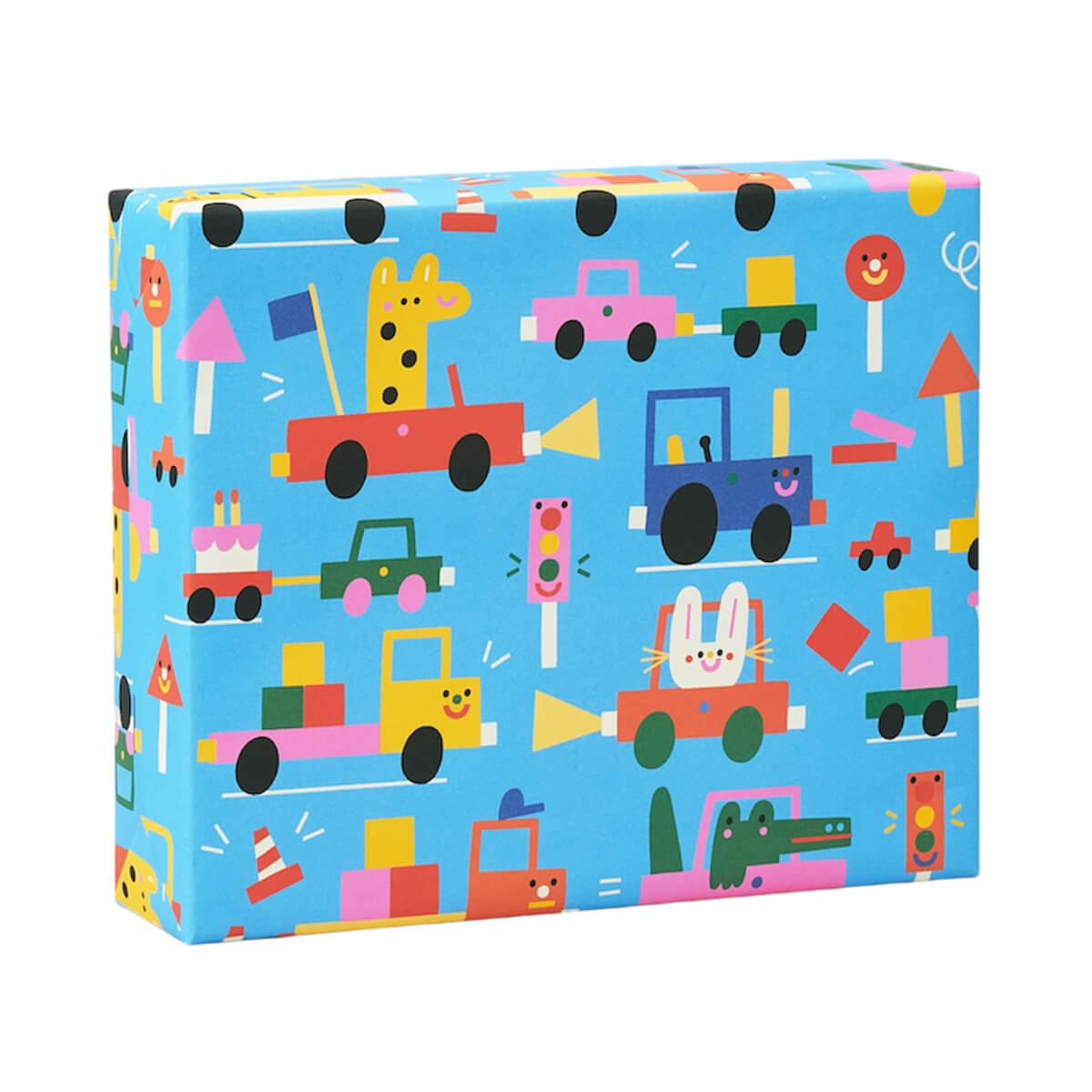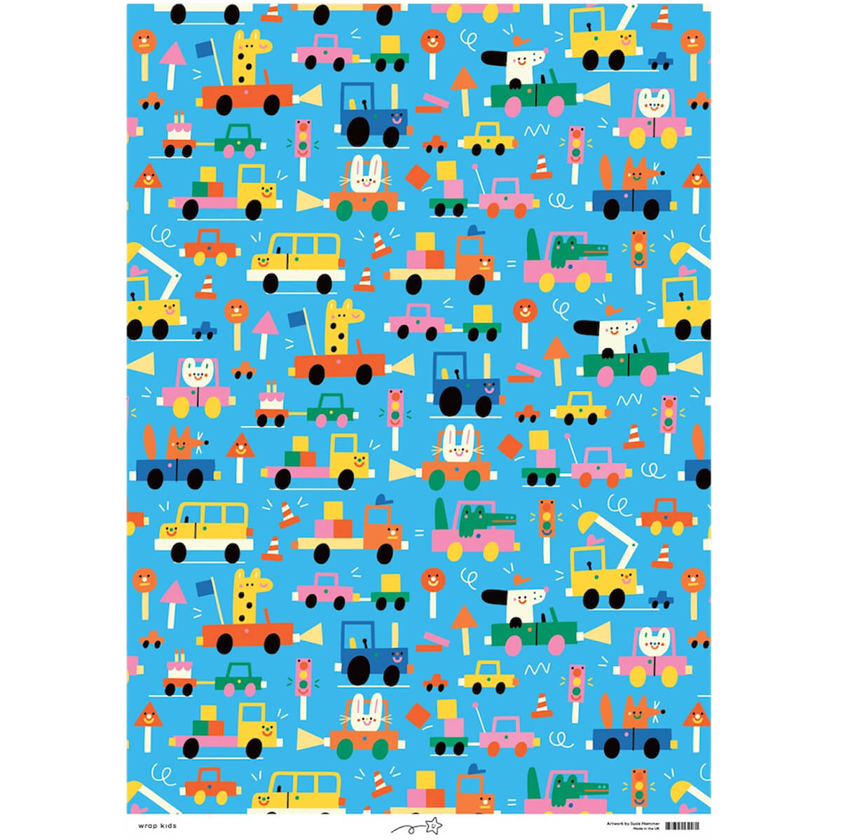 Beep Beep gift wrap by Susie Hammer for Wrap. A fun illustrated wrapping paper designed for children perfect for birthdays. Designed by artist Susie Hammer, this irresistibly cute and colourful wrapping paper design is sure to be a crowd pleaser. A wonderful way to wrap a special gift.